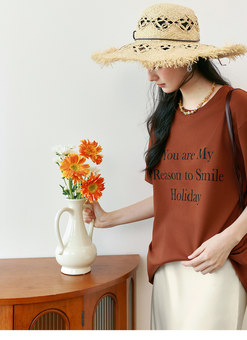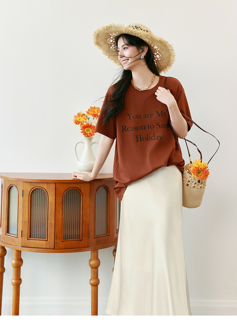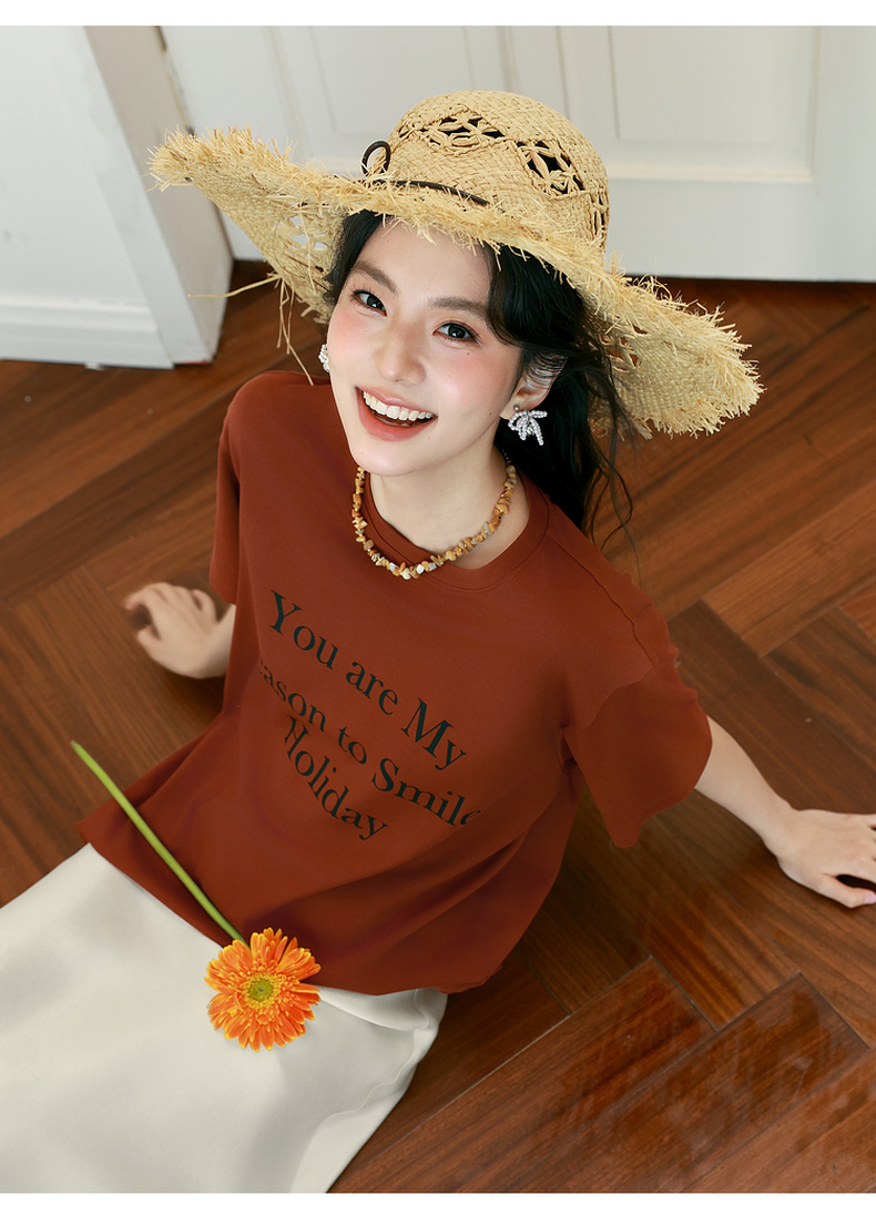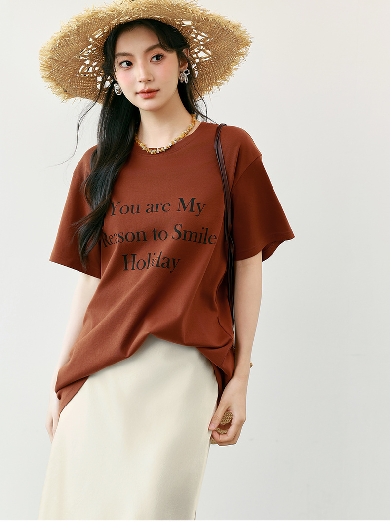 【商场同款】诗凡黎纯棉字母T恤2025夏新款休闲百搭上衣3G6100401