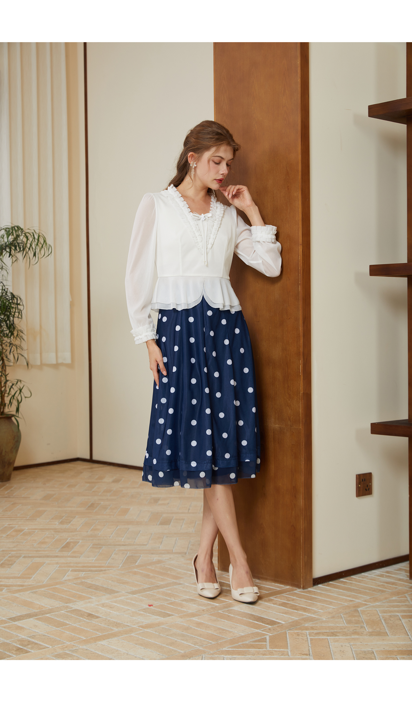 EIIR司歌厚雪纺印花蝴蝶结衬衫长袖套头气质职业ET881397