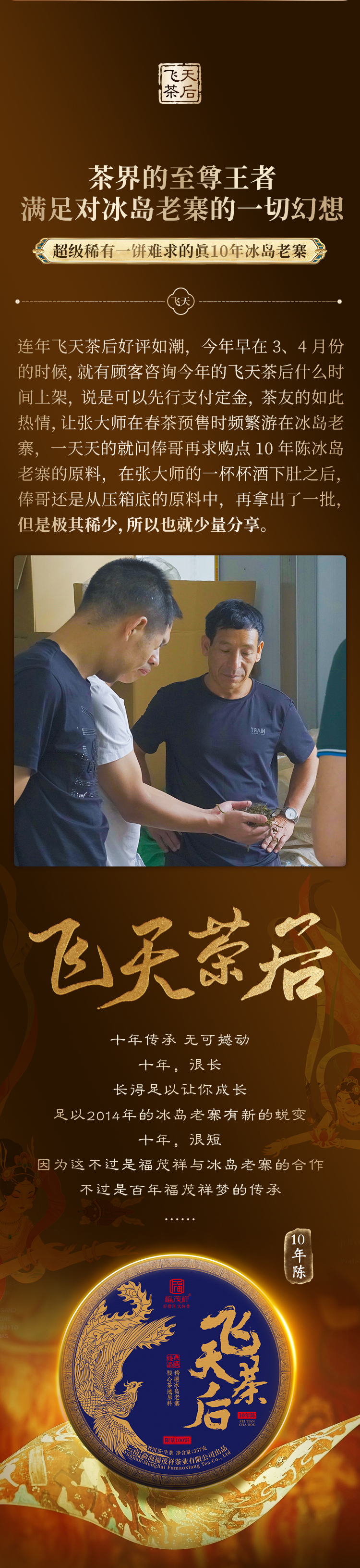 积分兑换;2021年“中普杯”斗茶金奖;昔归团茶 张老师联合非遗传承人:王支良联合出品;忙麓山600年单株级古树纯料;200g/团