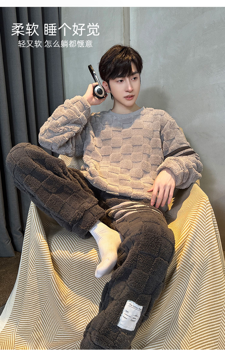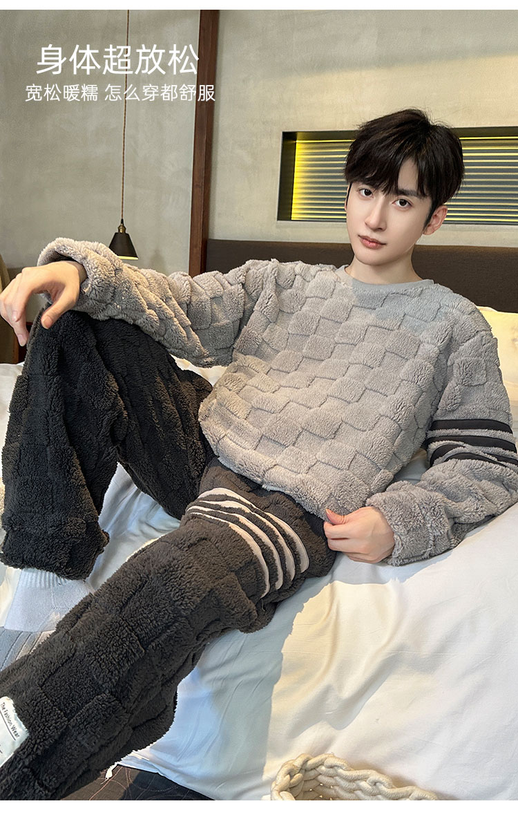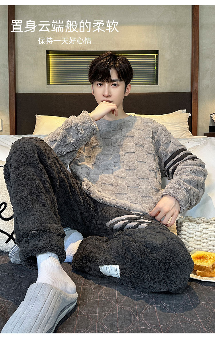洁丽雅冬季大码男士珊瑚绒睡衣加绒加厚舒适亲肤保暖睡衣男秋冬款
