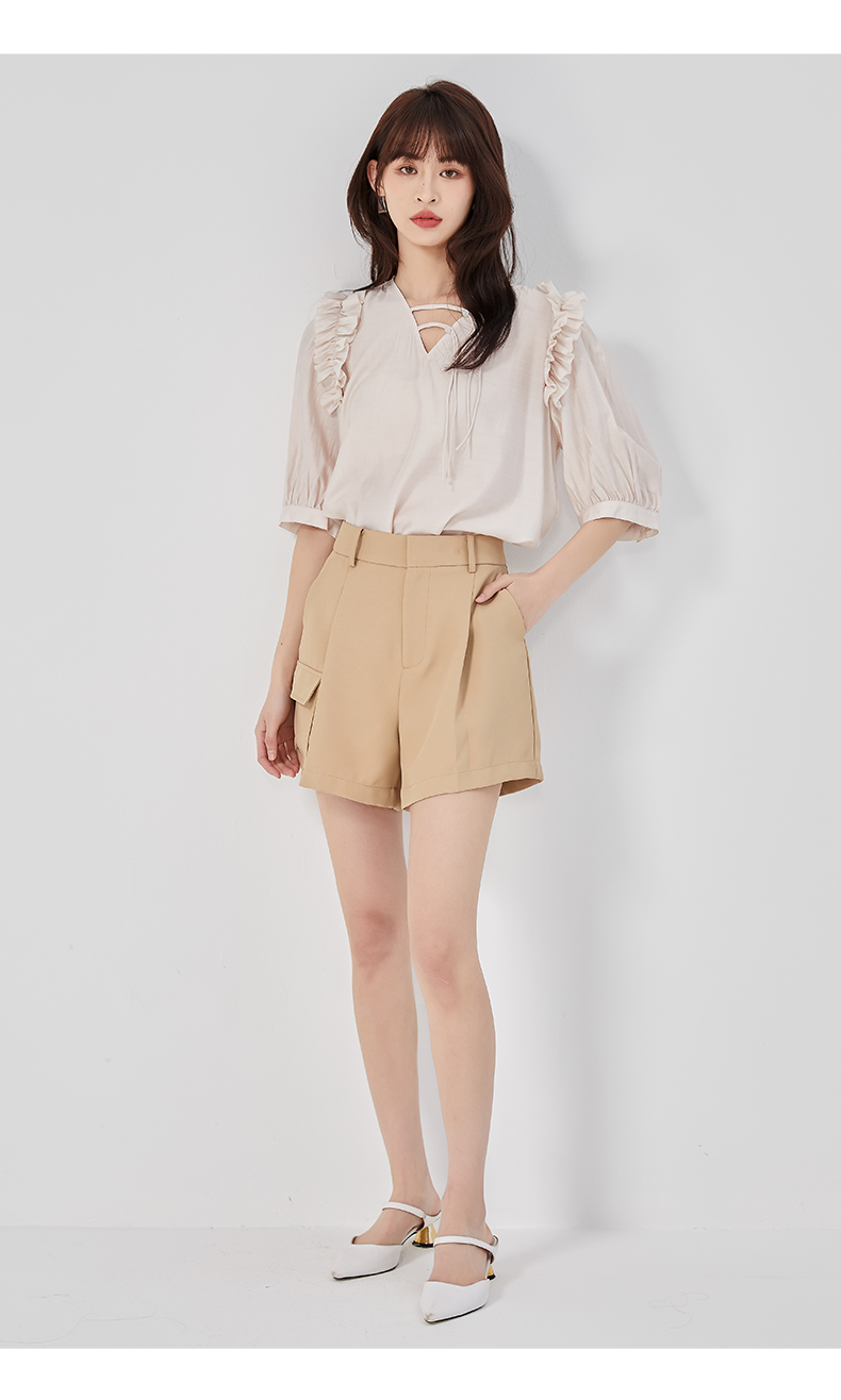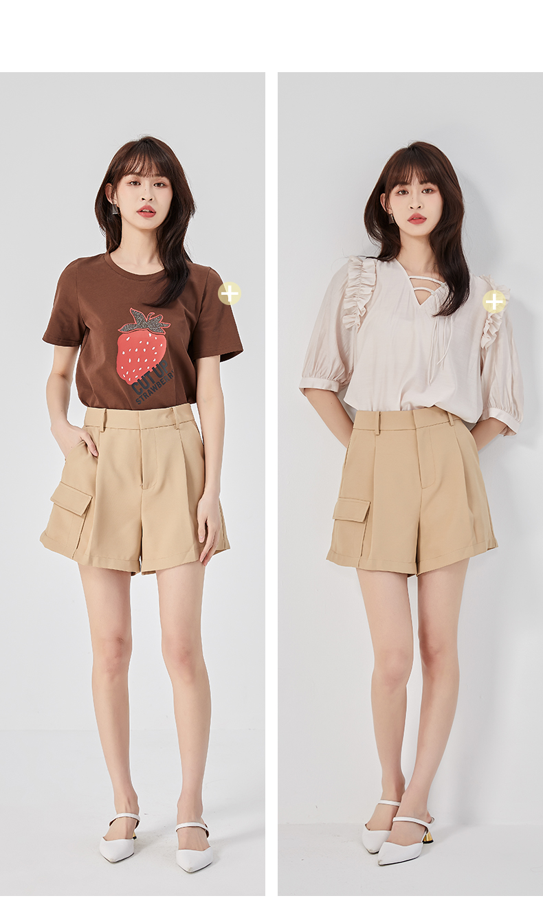 oldcolour2023夏季新款休闲通勤高腰直筒显瘦西装短裤女O24071458