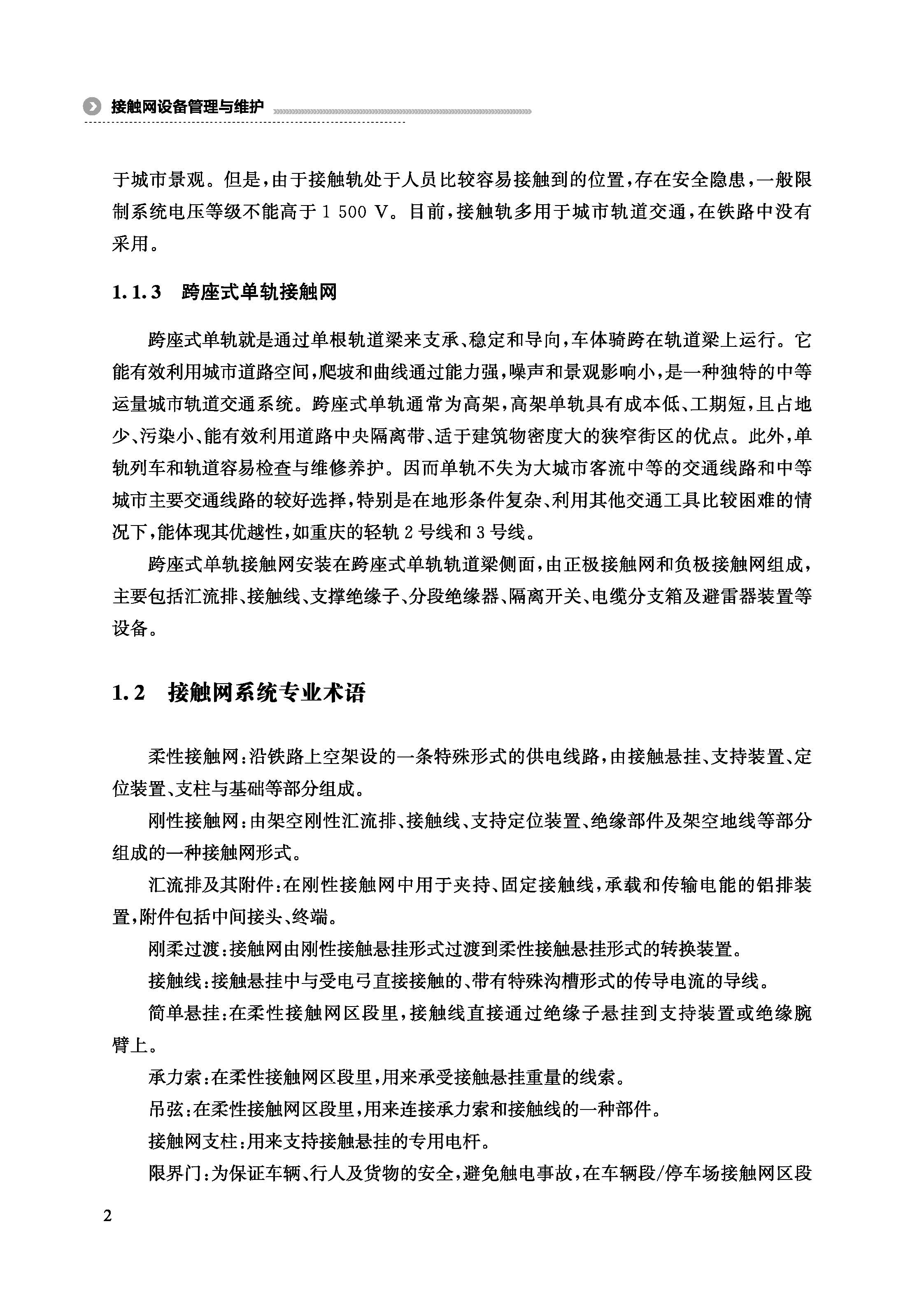 接触网是供电系统中的重要组成部分,担负着把从牵引变电所获得的电能直接输送给电客车使用的重要功能。本稿结合轨道交通工作实际,对刚、柔性接触网基本知识、设备结构、检修安全规程、技术标准、维修要求、施工流程进行了详细的阐述。