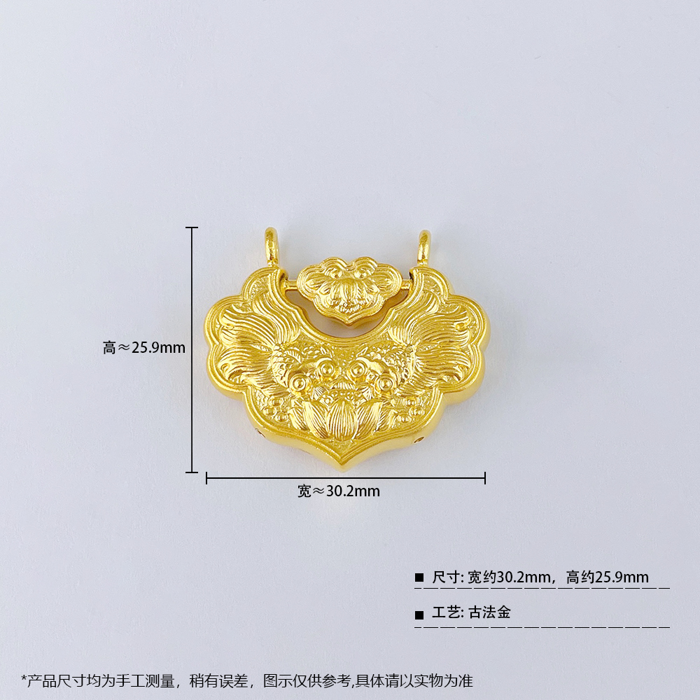 【限时克减150元】足金999 #儿童/宝宝 【錾刻工艺】古法双面连年有余双鱼锦鲤锁包莲花平安如意锁包空心吊坠(YGFDZ00216-3)(预售产品下单后不退款不退货不换货不补差价)