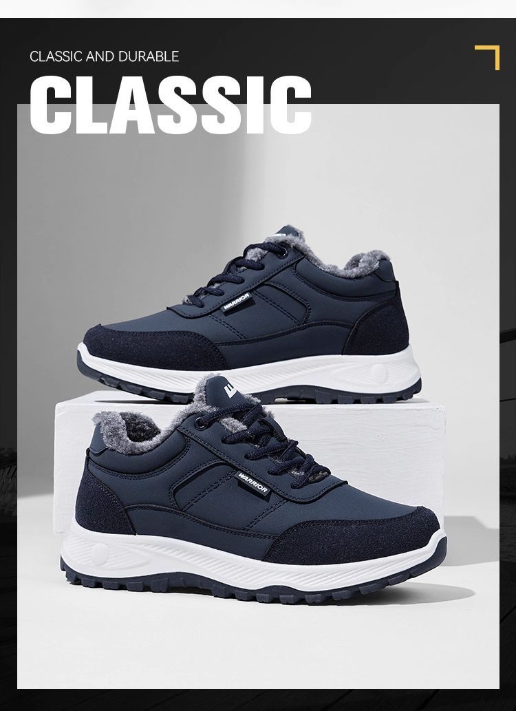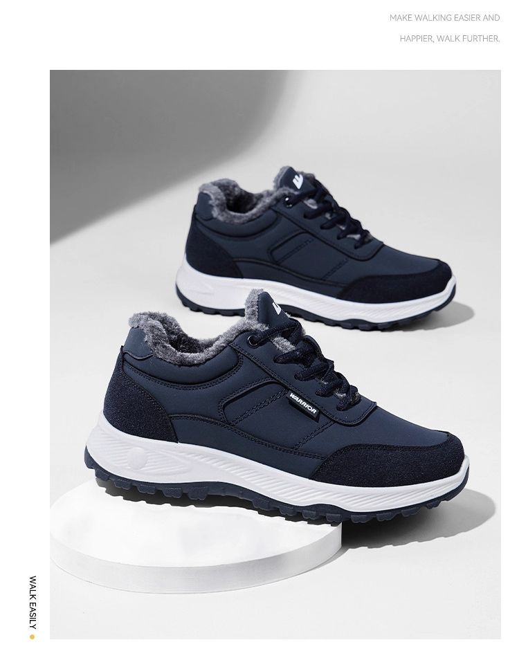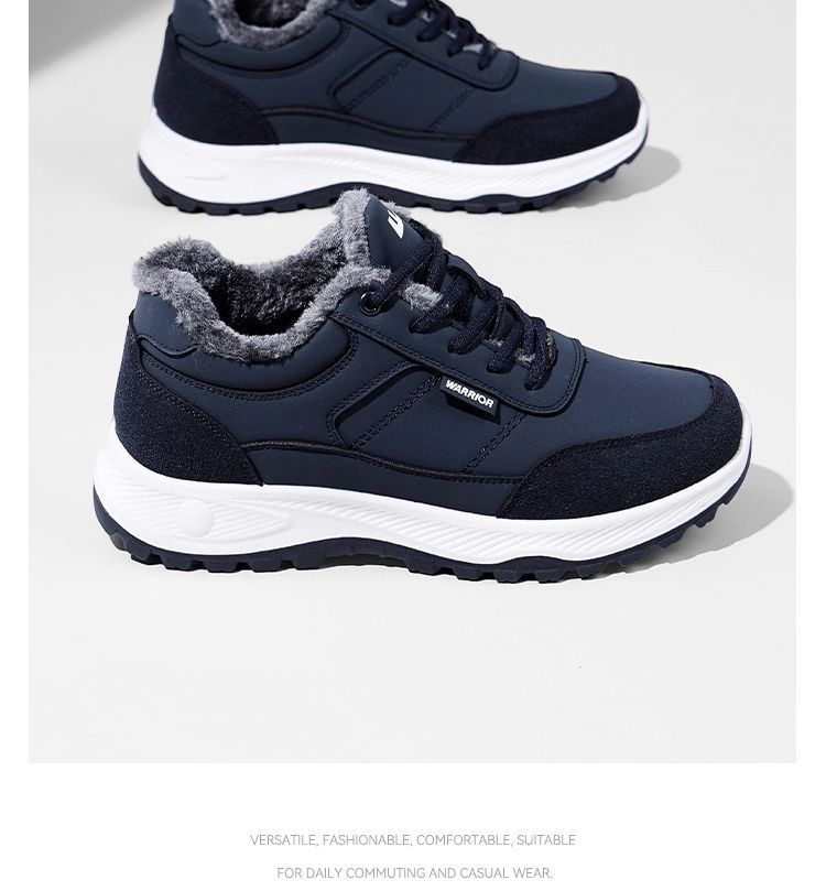 回力男鞋2025秋冬新款运动鞋加厚加绒休闲鞋防泼水皮面中老老人鞋