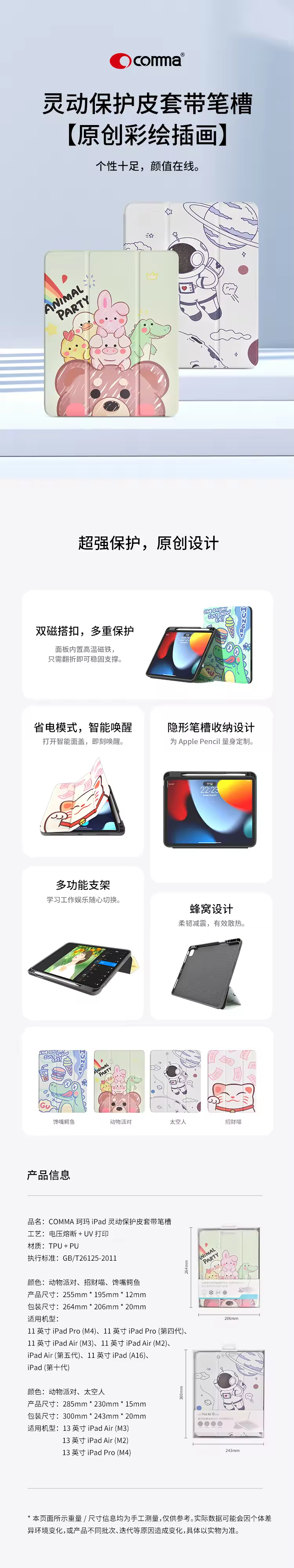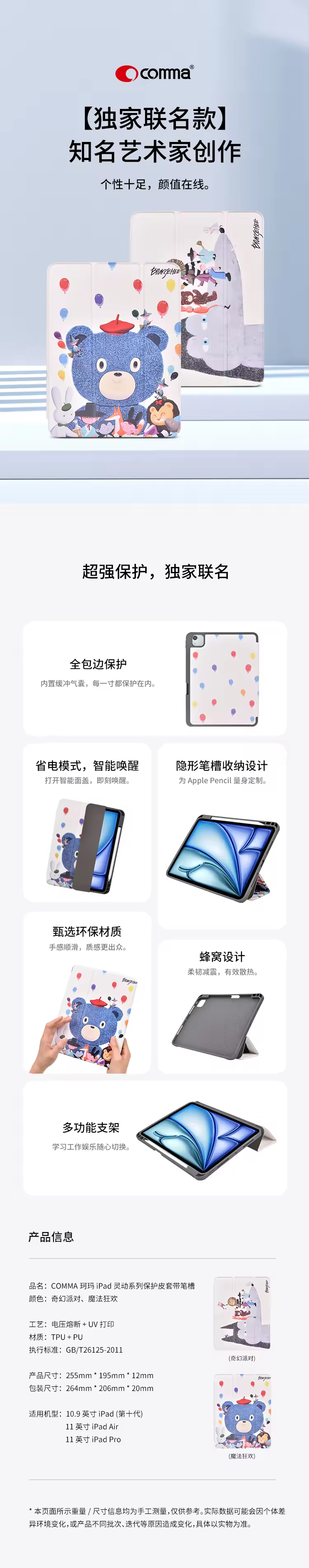 COMMA珂玛 iPad 11 英寸 iPad Air灵动保护皮套带笔槽