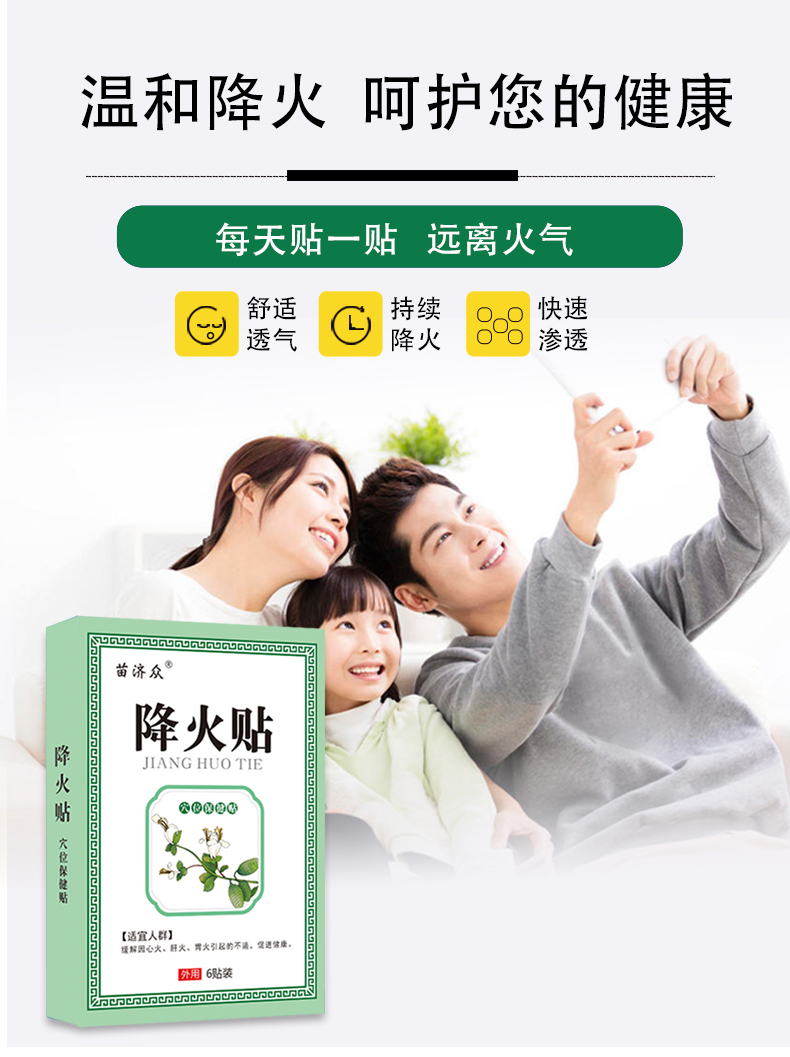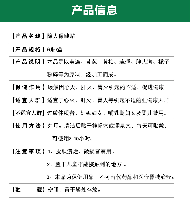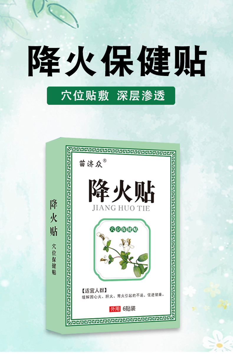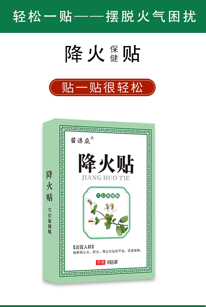 【轻轻一贴 改善溃疡】降火保健贴 大便干结口舌生疮咽痛口气异常 心火肝火胃火 降火贴 6贴/盒