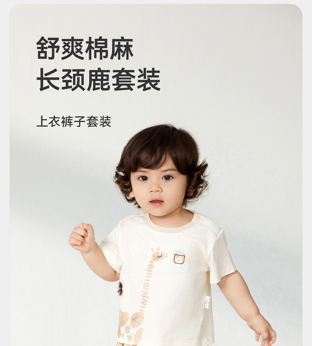 英氏婴儿衣服夏季儿童纯棉套装短袖裤子套装25新款YRABJ2R007A