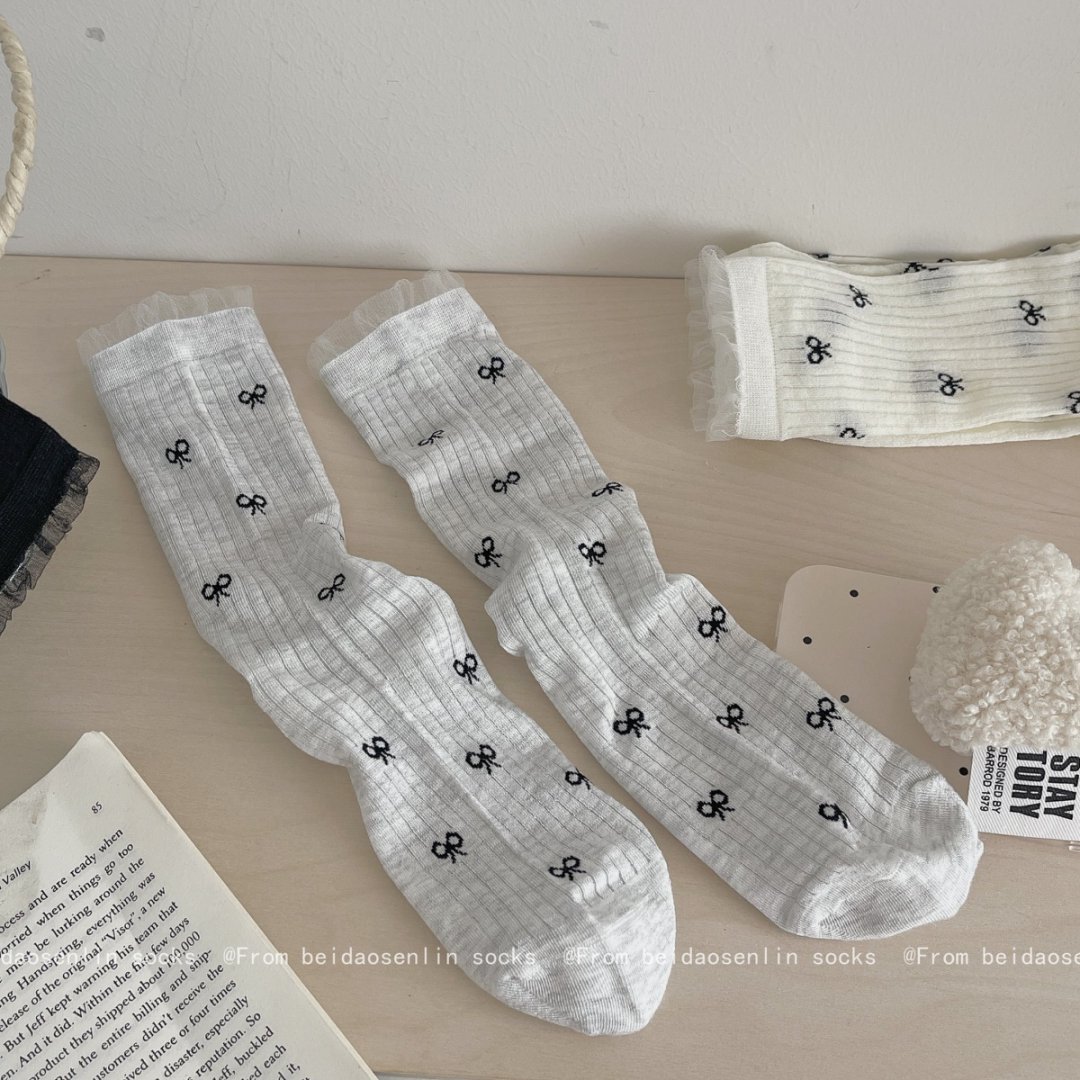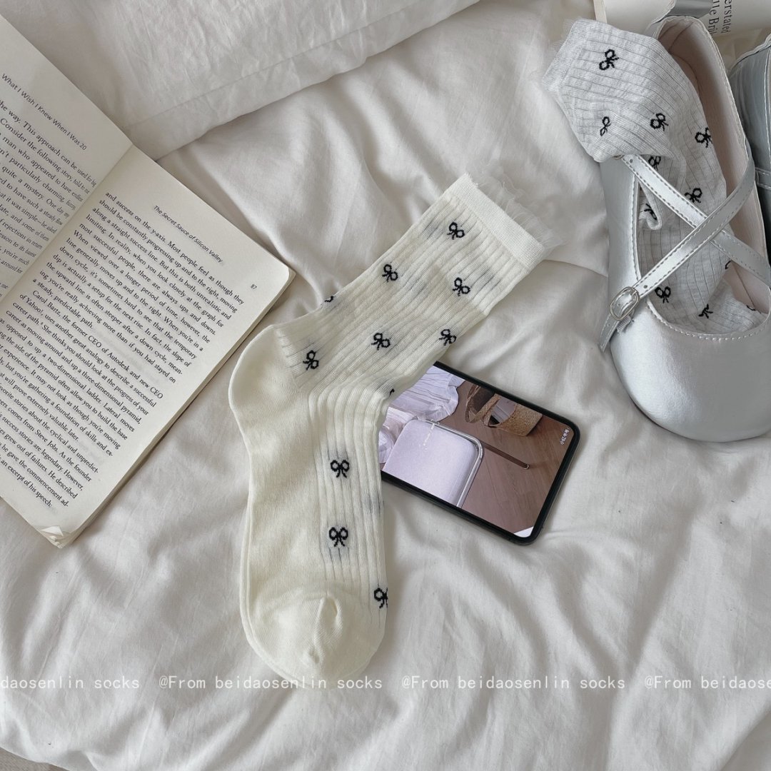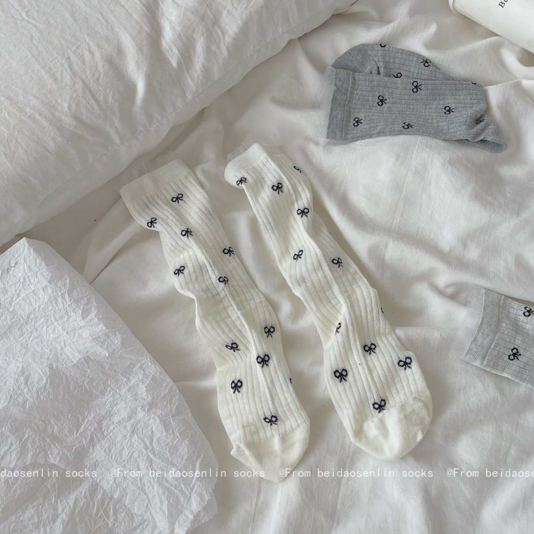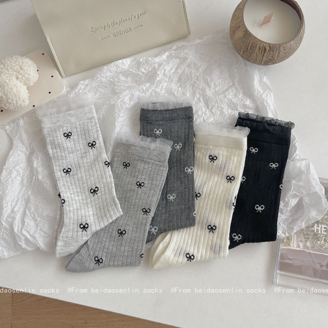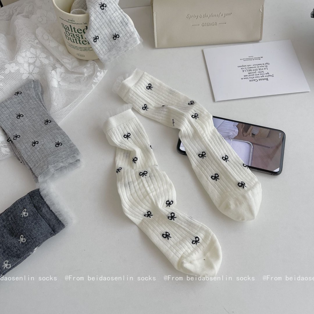 【39元5双,下单拍5】Mekki春夏新品少女中筒袜ins风袜子女生夏季超薄透气蝴蝶结堆堆袜ZXFX2026