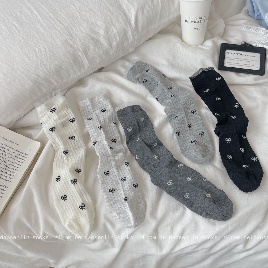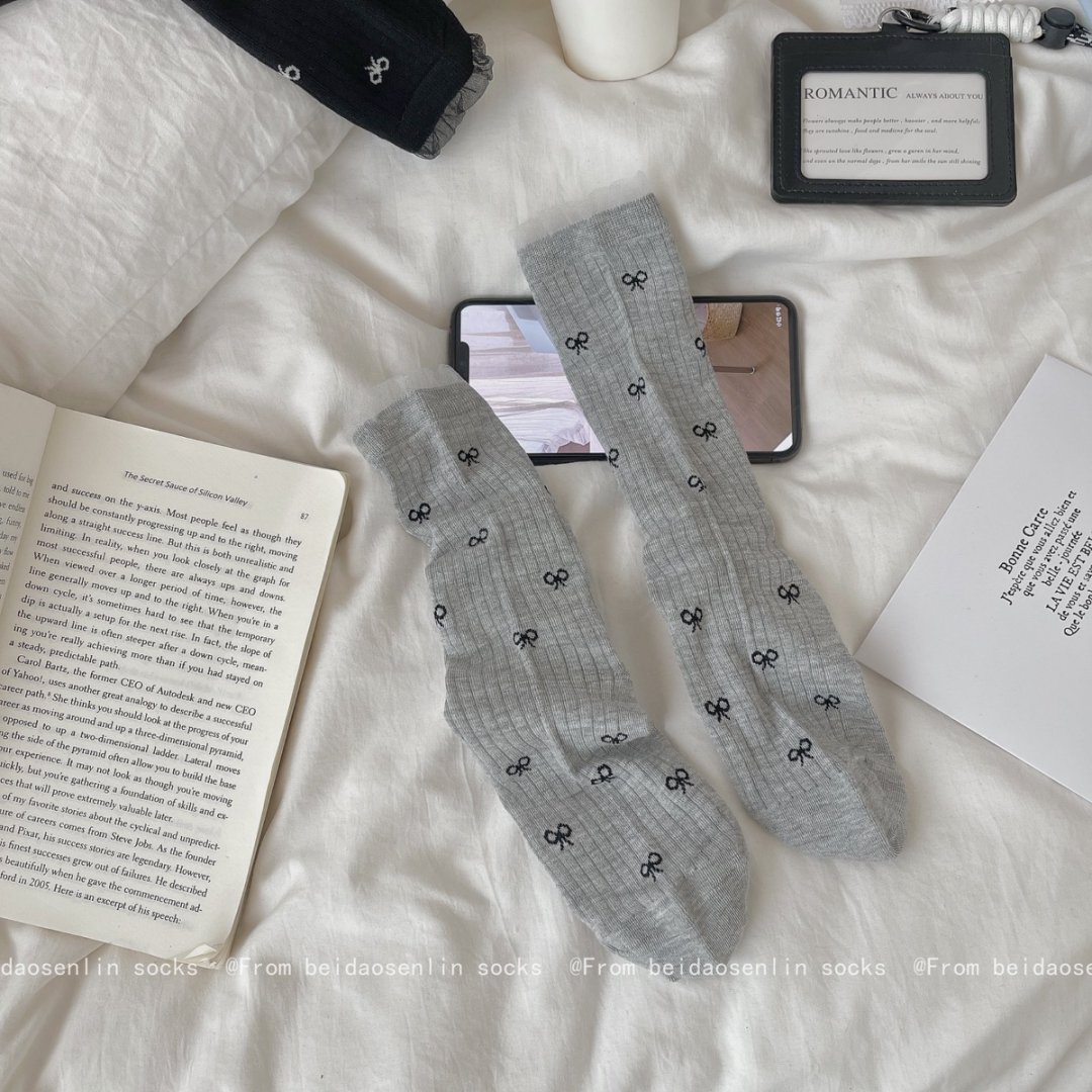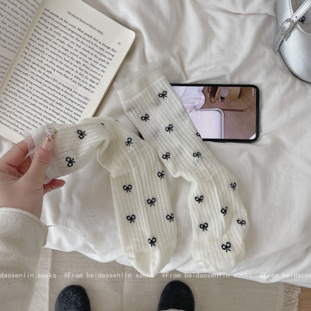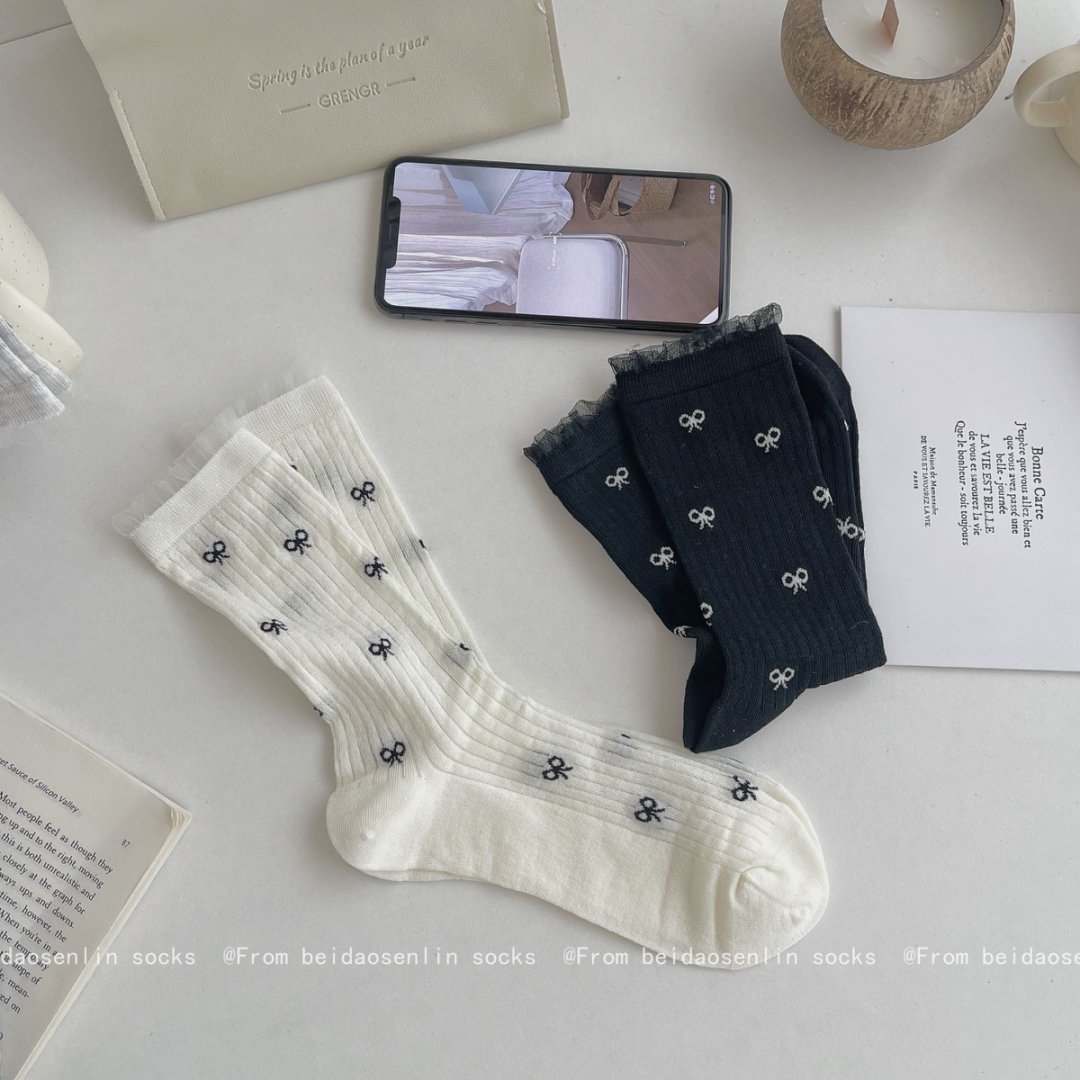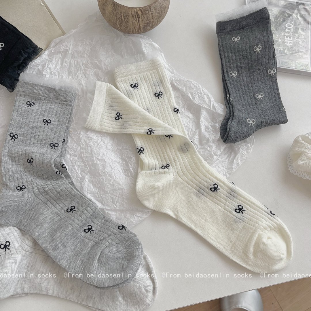 【39元5双,下单拍5】Mekki春夏新品少女中筒袜ins风袜子女生夏季超薄透气蝴蝶结堆堆袜ZXFX2026