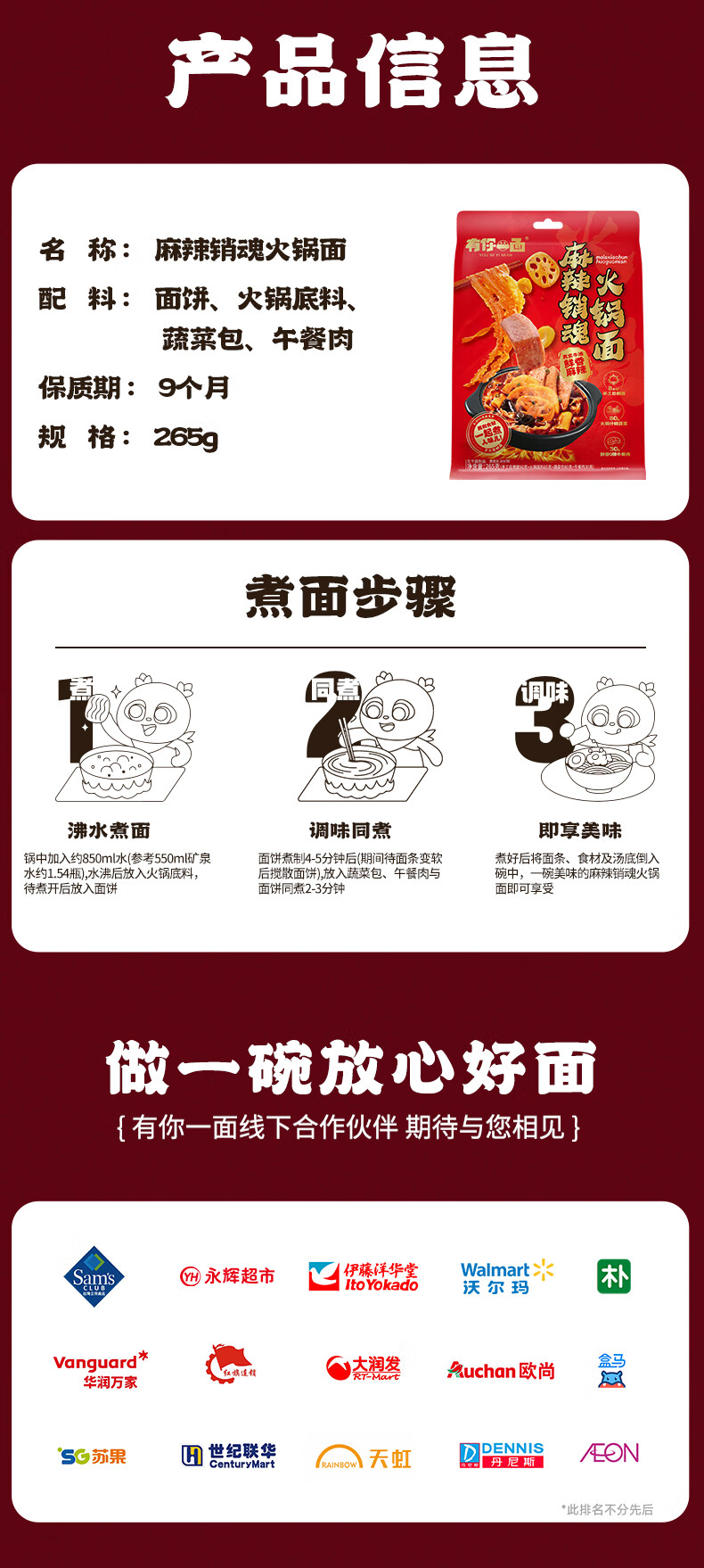 有你一面麻辣销魂火锅面265g