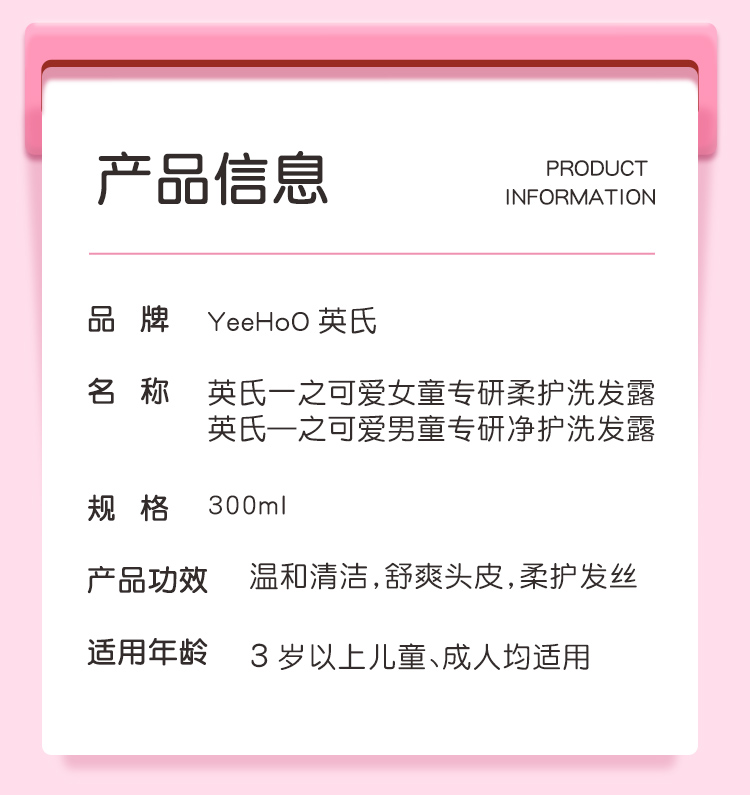 英氏儿童洗发水儿专用女孩护发素3-15男女童氨基酸去屑洗发露