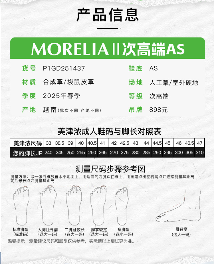 小李子正品美津莫雷拉MORELIA2次高端AS碎钉运动训练足球鞋成人男
