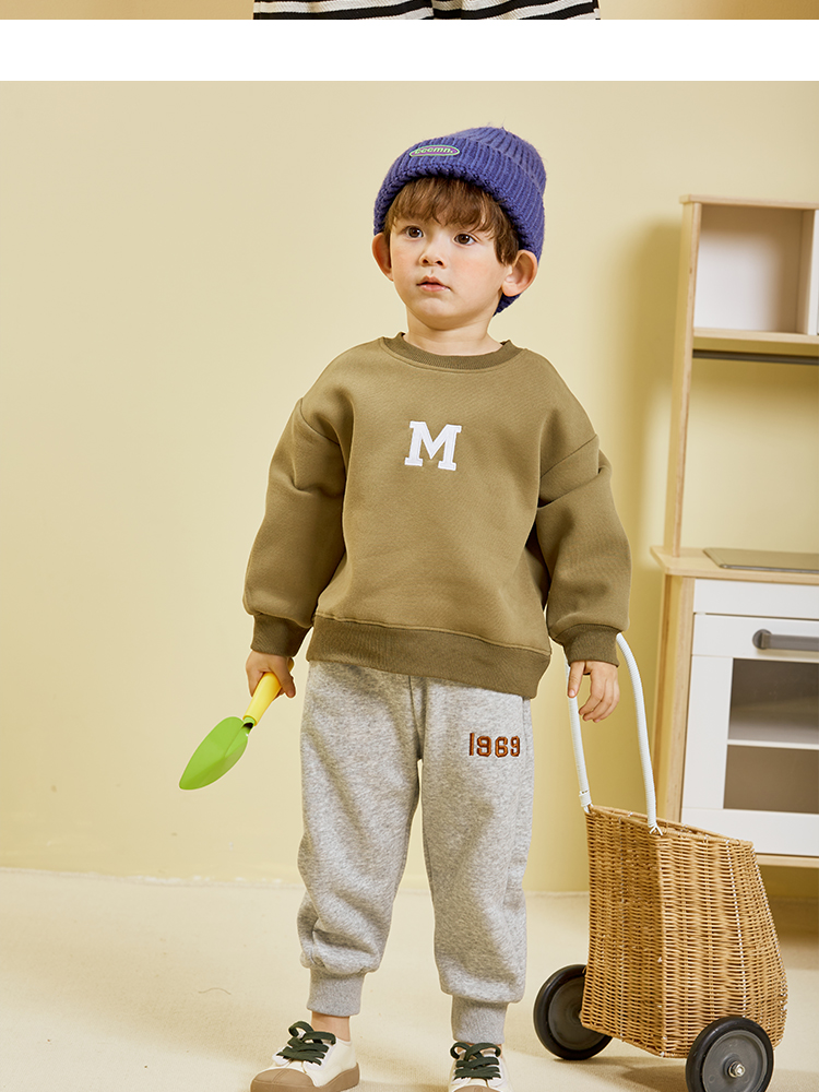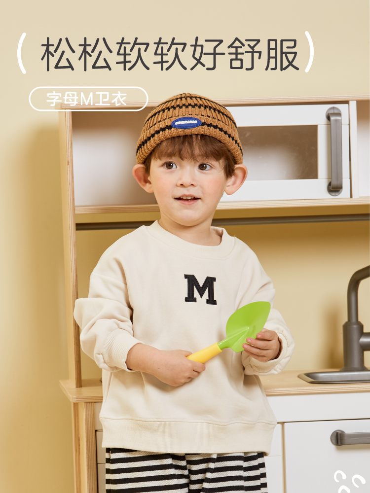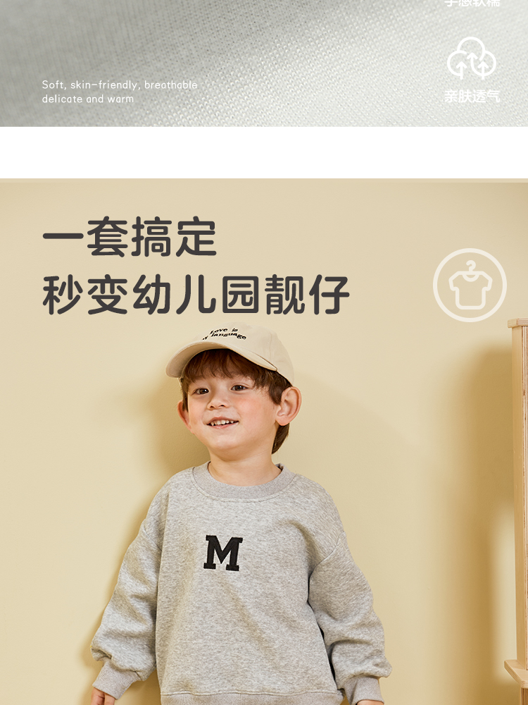 【春季上新!儿童卫衣男孩】2023春夏新品针织圆领卫衣男童百搭T恤落肩宽松洋气春装潮