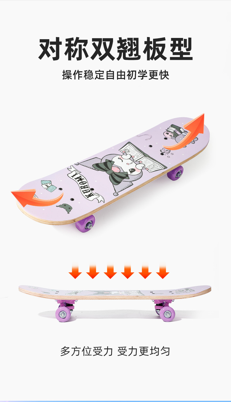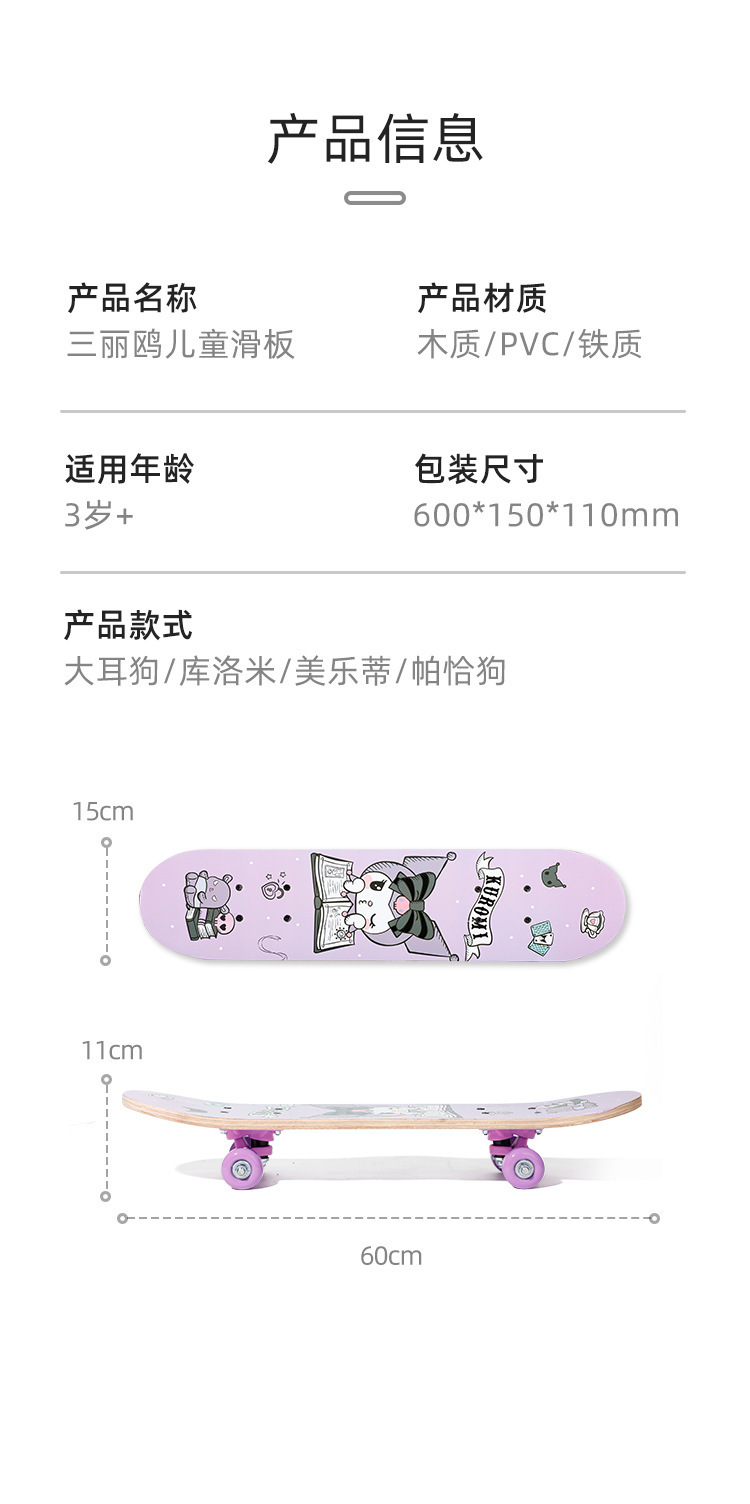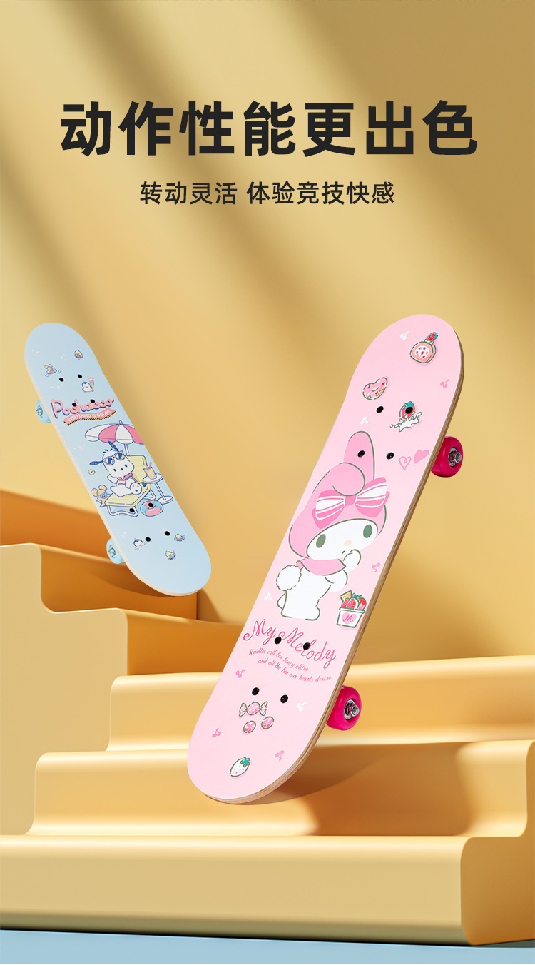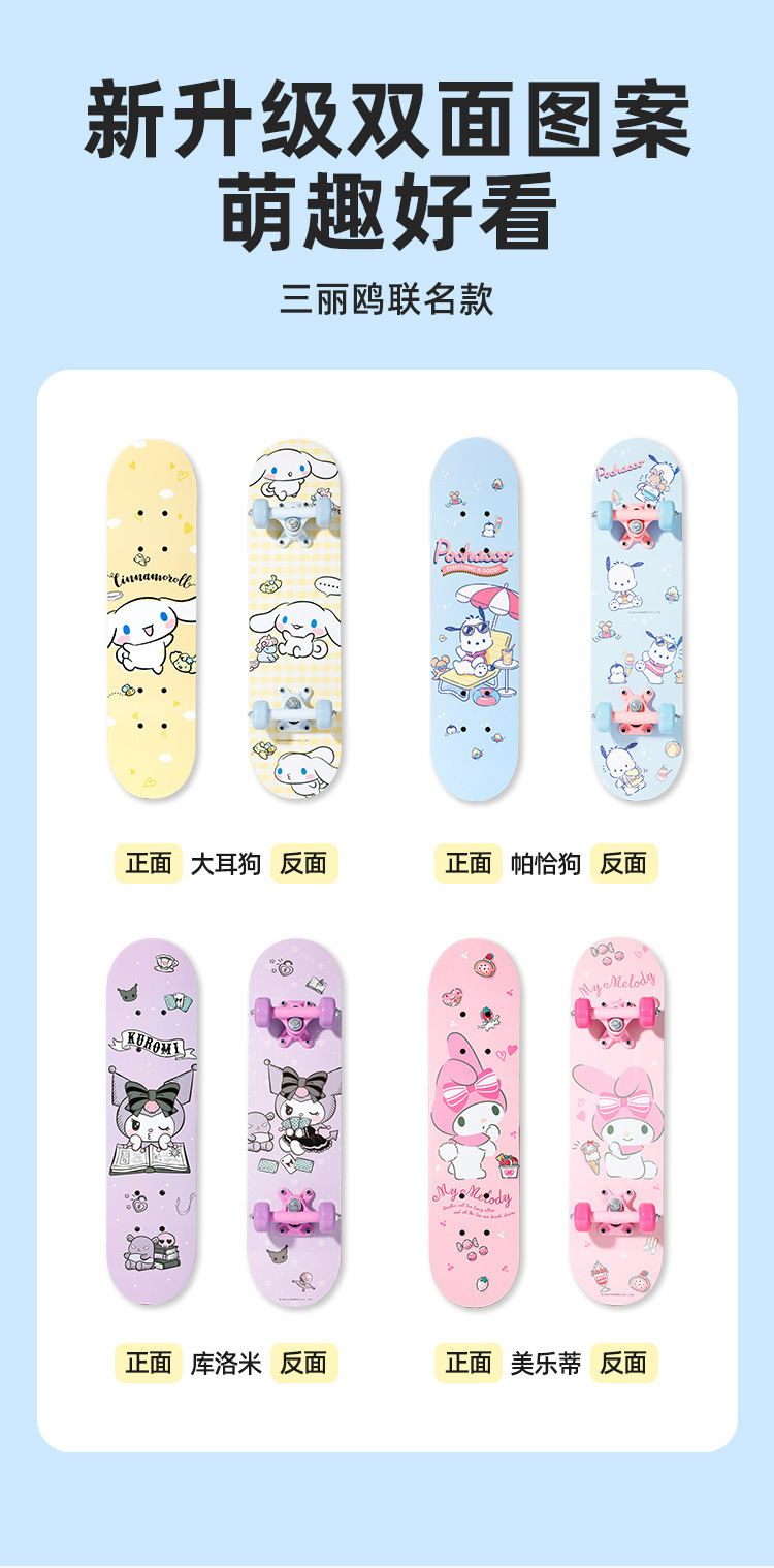 三丽鸥儿童滑板3-6-12岁男孩女孩滑板车初学者四轮双翘板高弹滑轮
