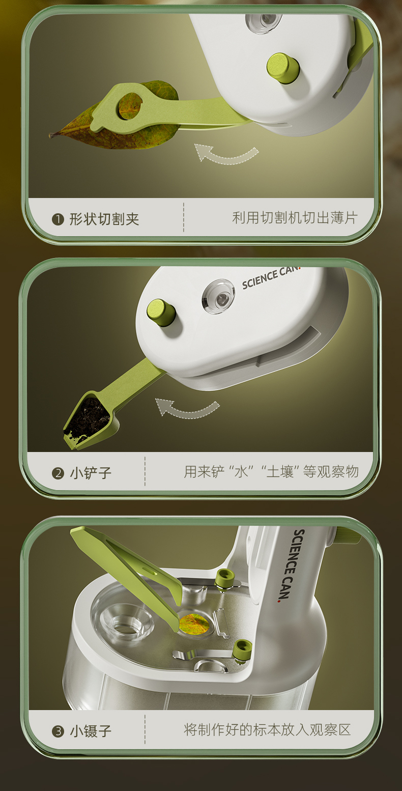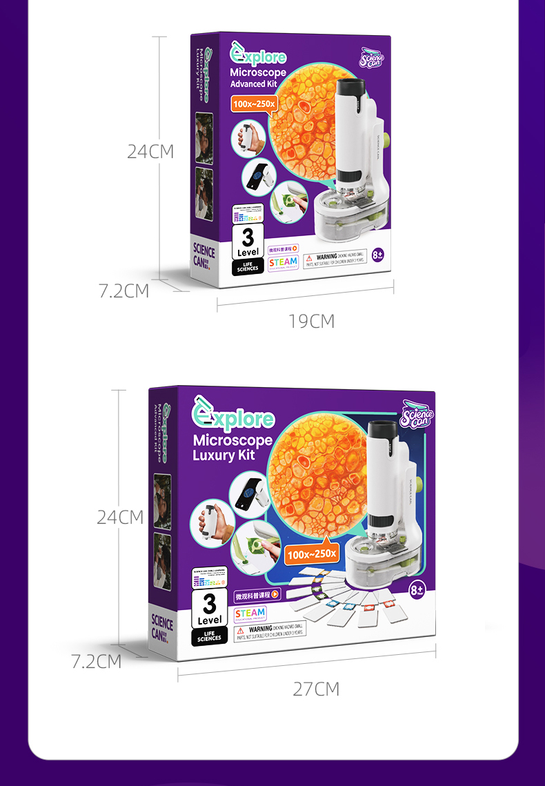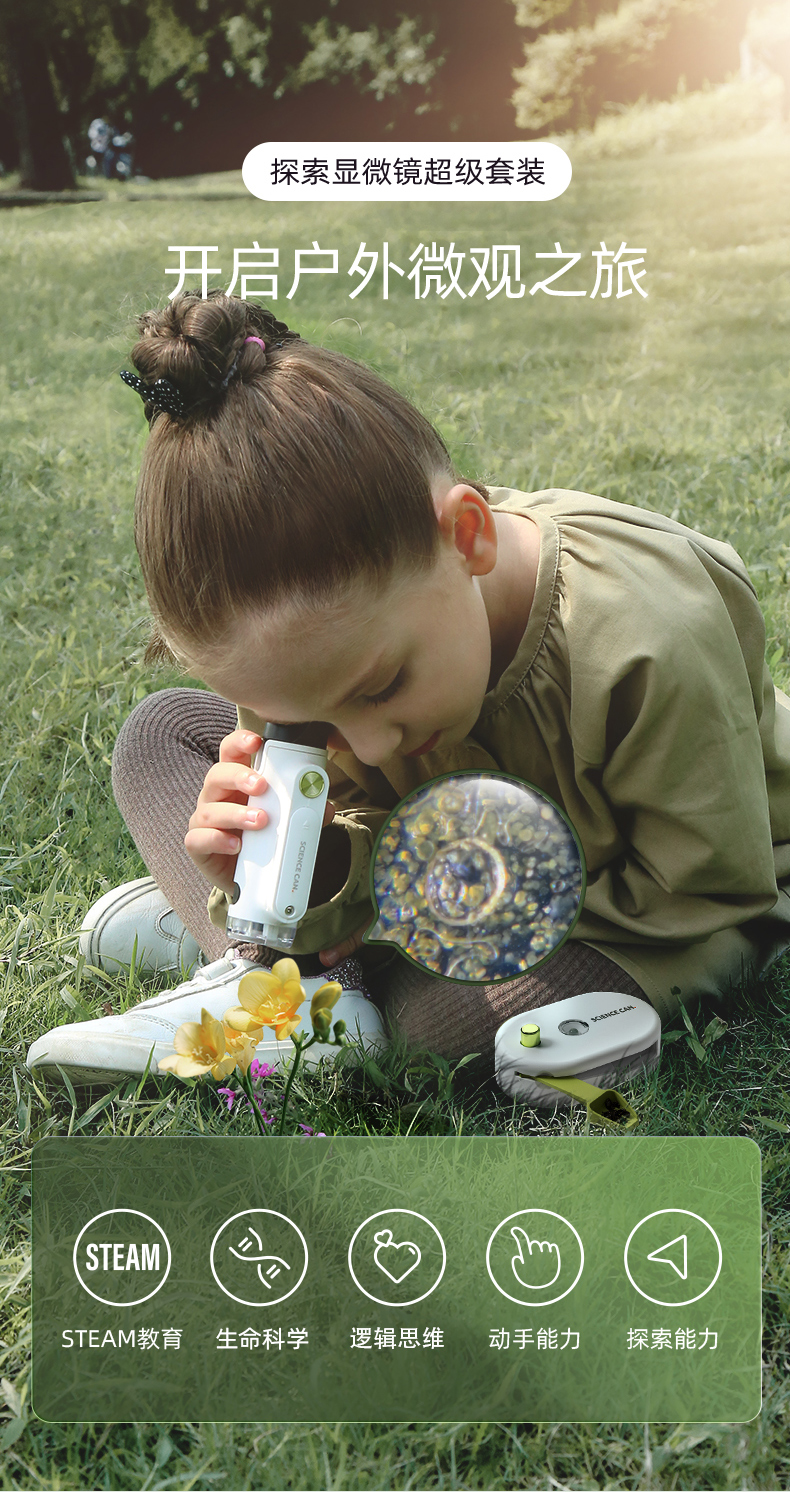 科学罐头儿童显微镜科学小学生中学生专用250倍光学手持便携式生物三合一看细胞电子可连手机