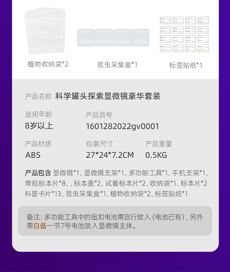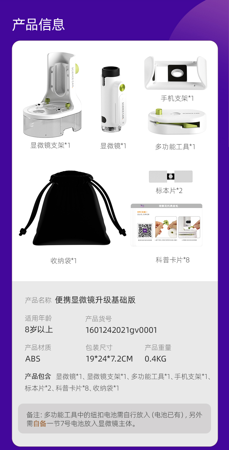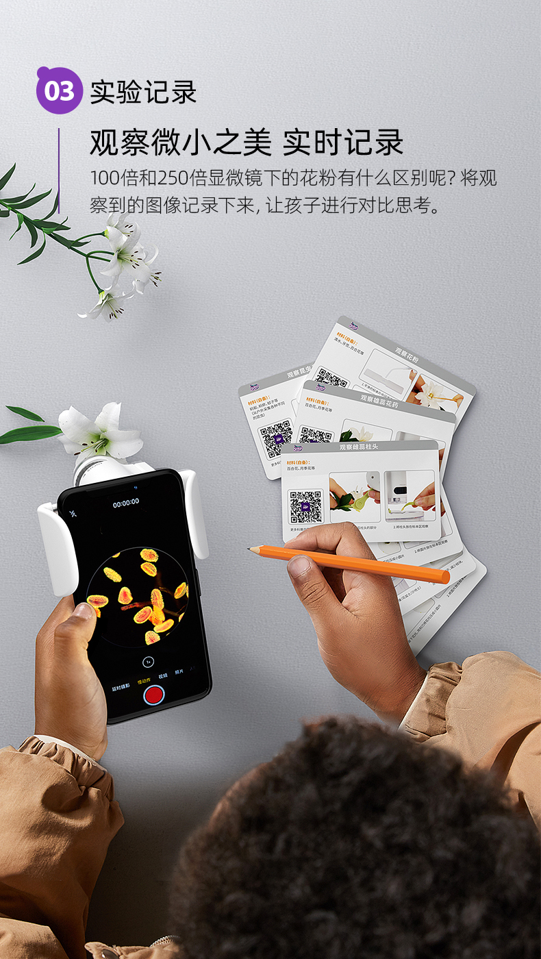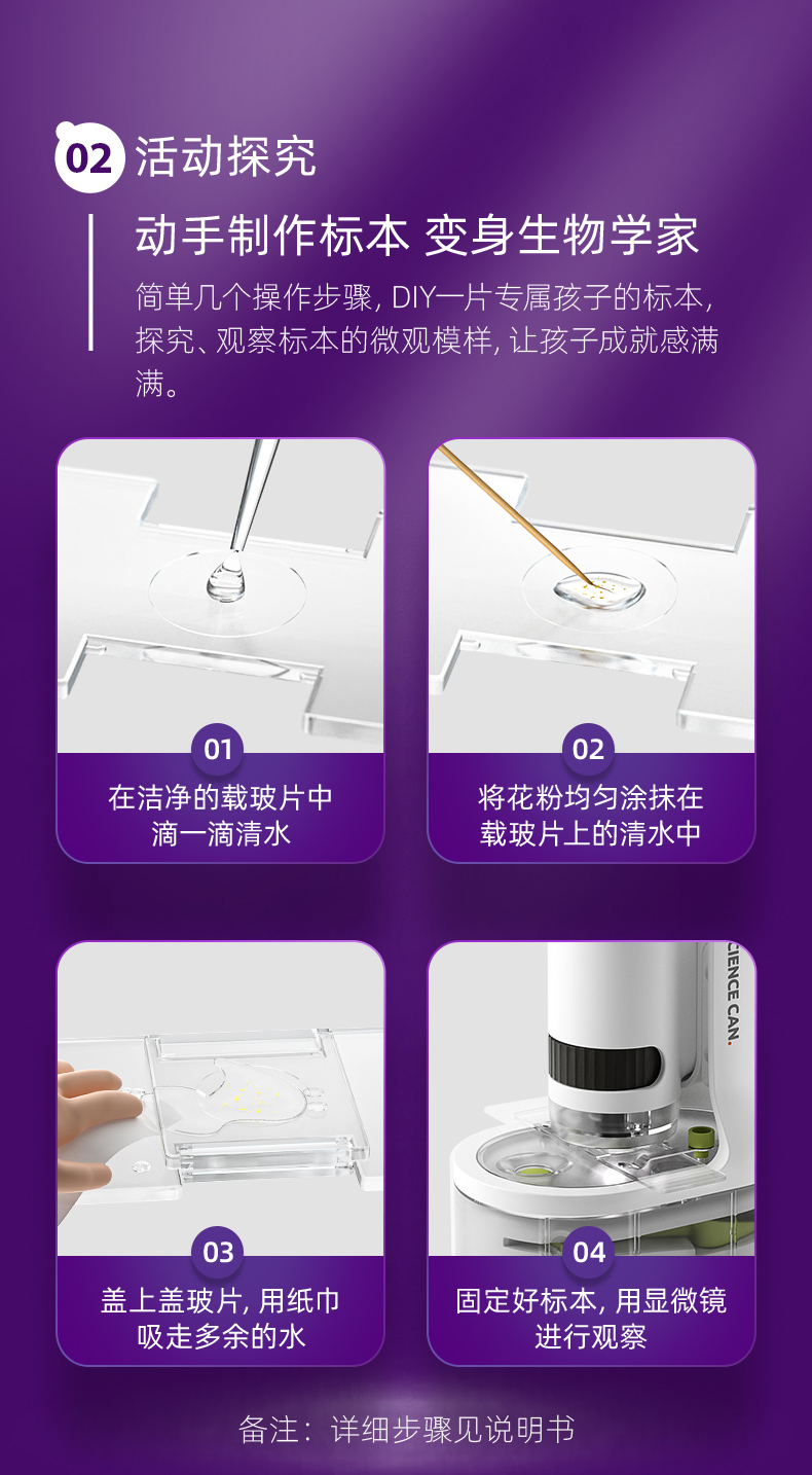 科学罐头儿童显微镜科学小学生中学生专用250倍光学手持便携式生物三合一看细胞电子可连手机