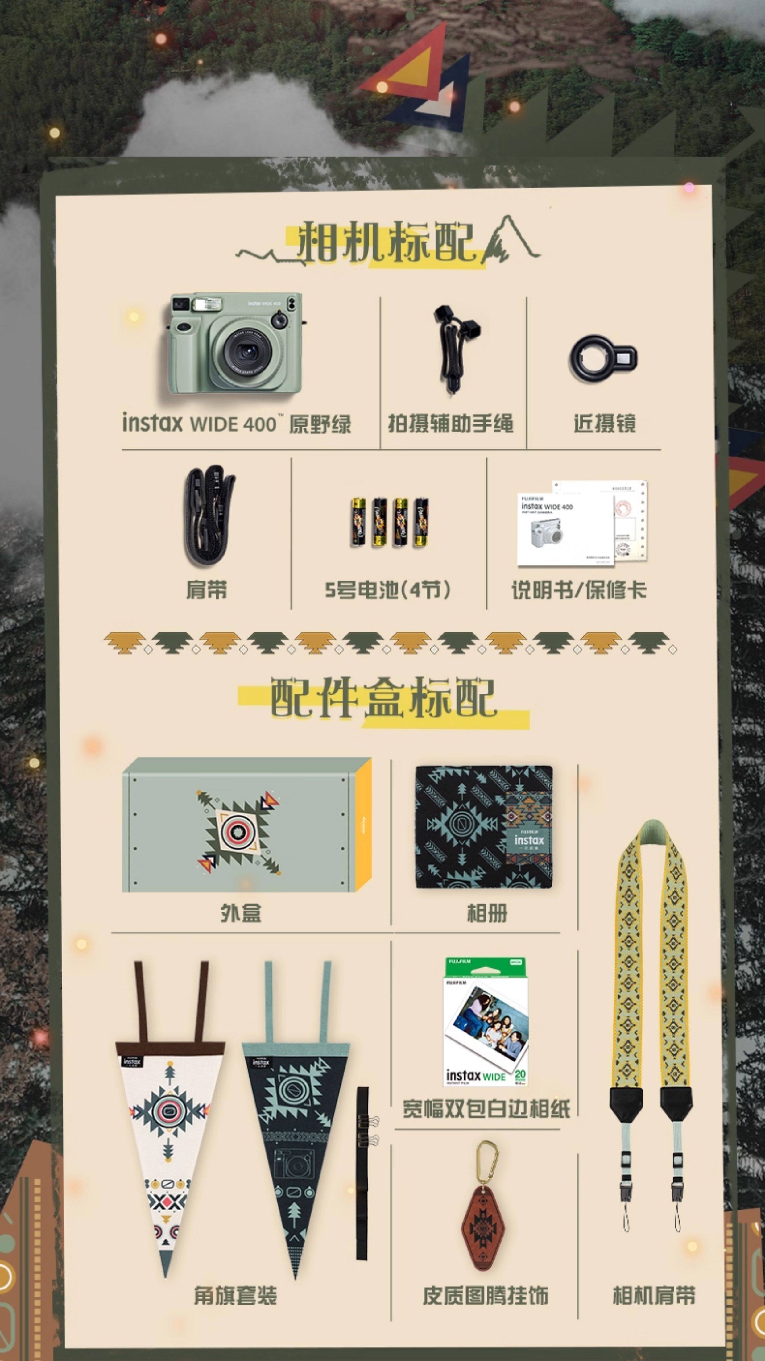 Fujifilm/富士 拍立得 Wide400 原野绿 旷野图腾套装 复古宽幅