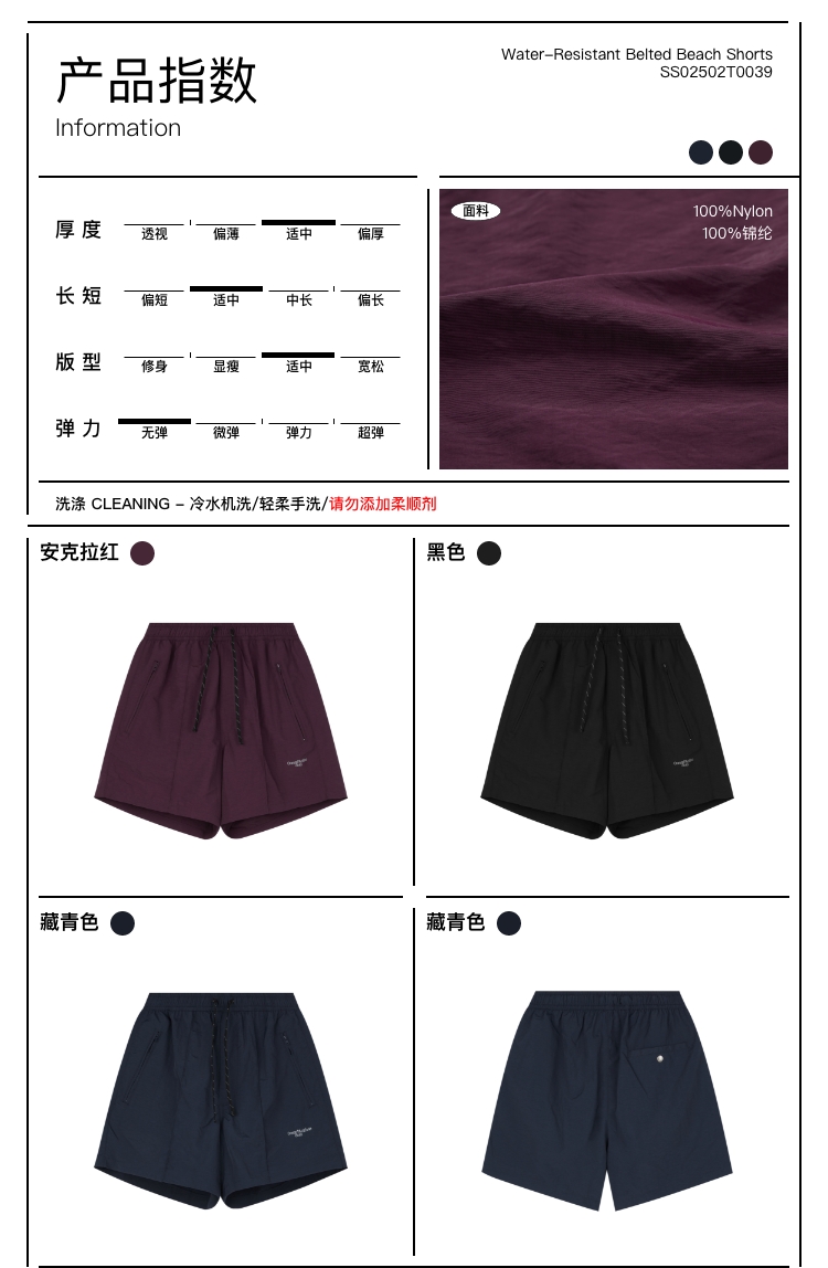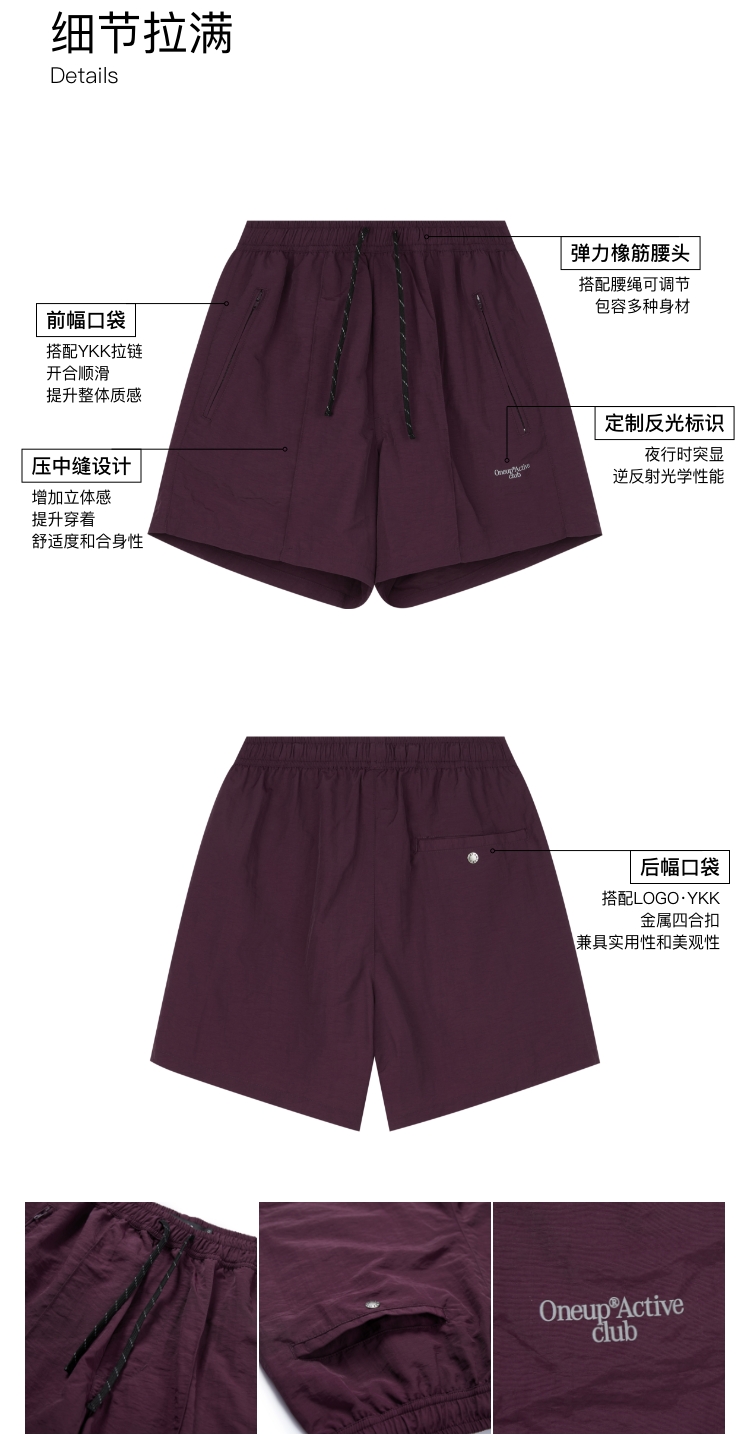 oneup防泼水中缝系带沙滩裤(男女同款)