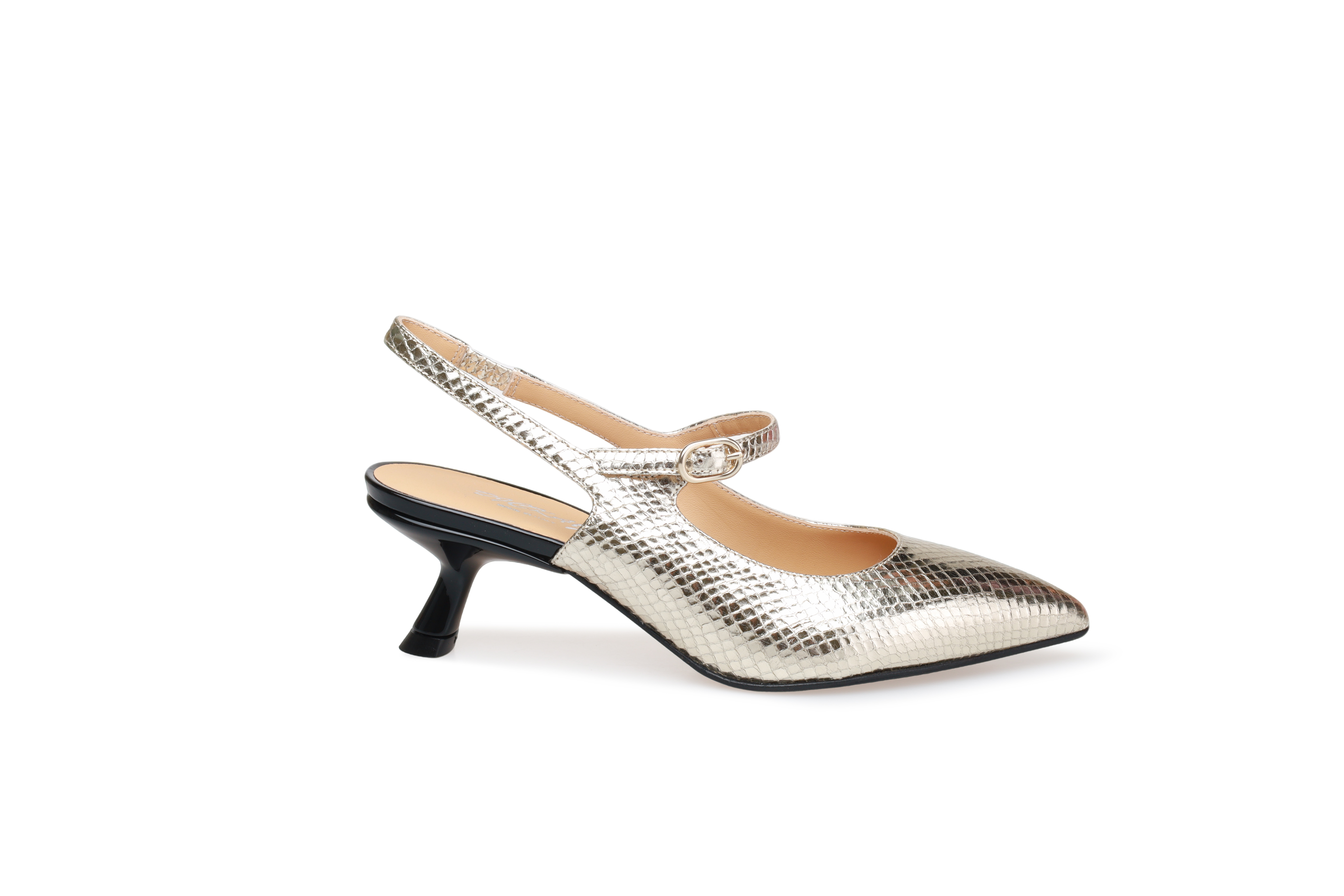 豪麟名鞋进口迪嘉女鞋半凉鞋羊皮革S25336金色