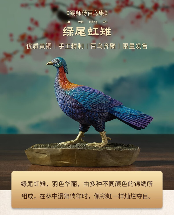 铜师傅 全铜摆件《铜师傅百鸟集》之绿尾虹雉 家居饰品