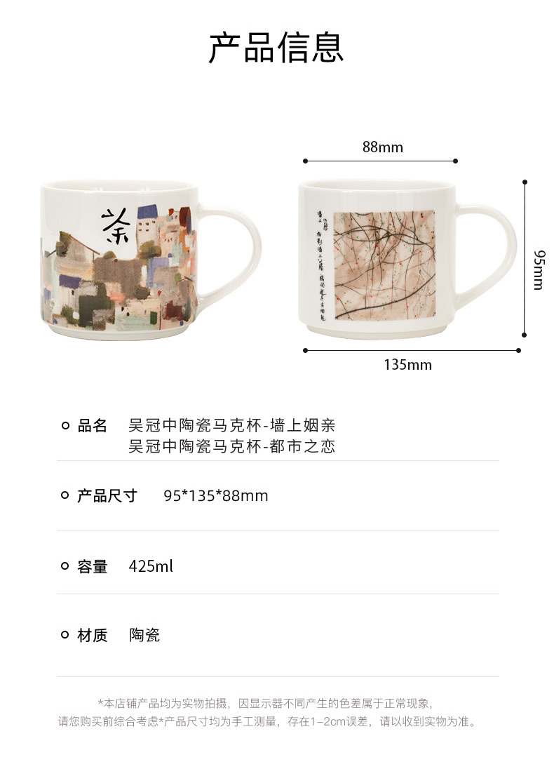 吴冠中 墙上姻亲 都市之恋 陶瓷马克杯 礼品 送礼推荐 送朋友 节庆礼物 425ML