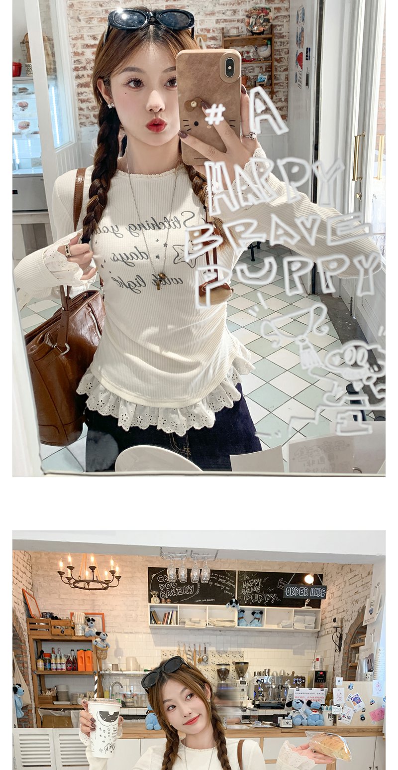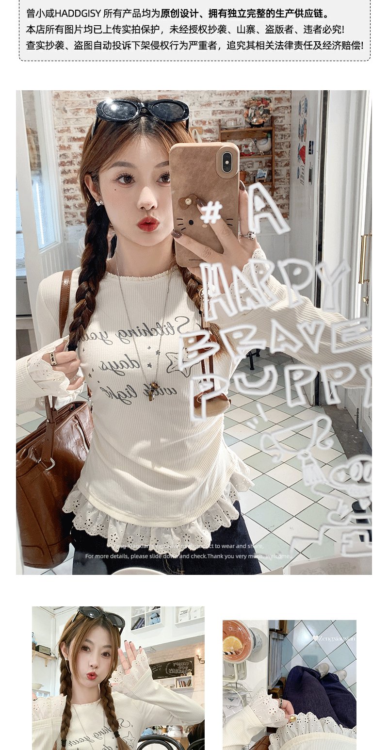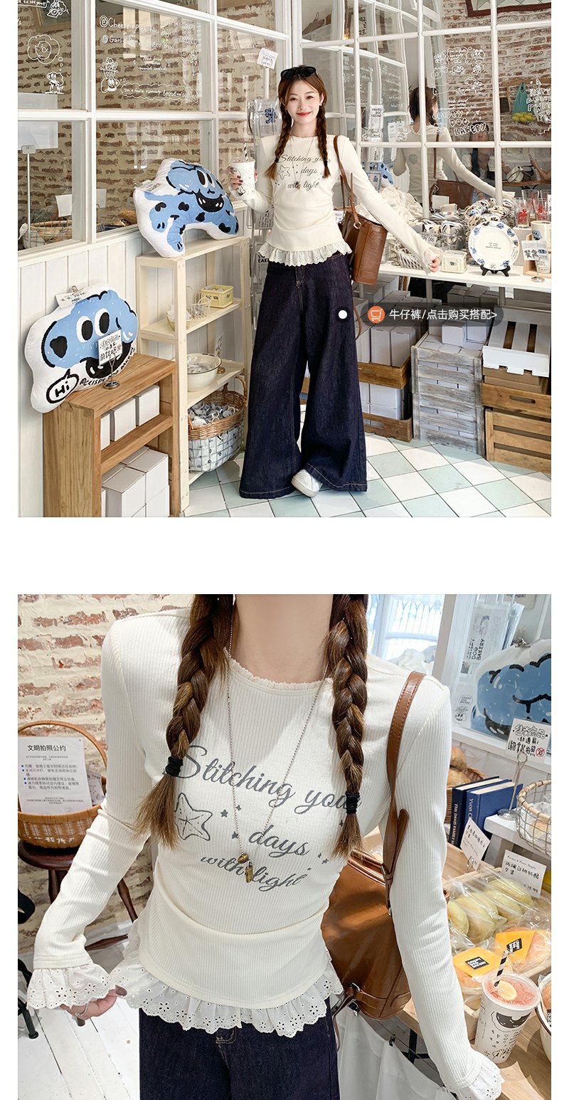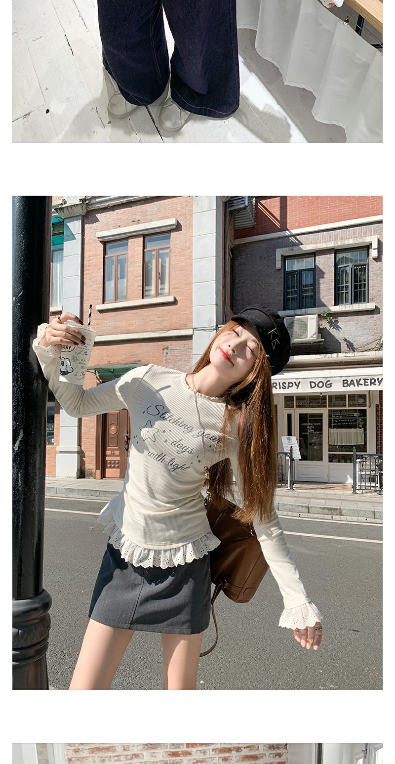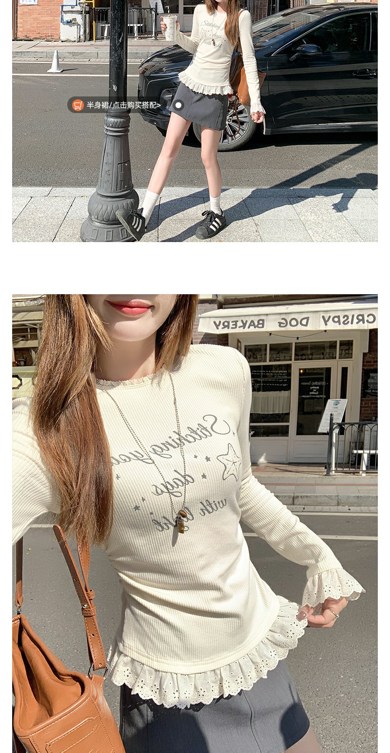 【129元任选2件】现货!韩系杏色印花长袖t恤
