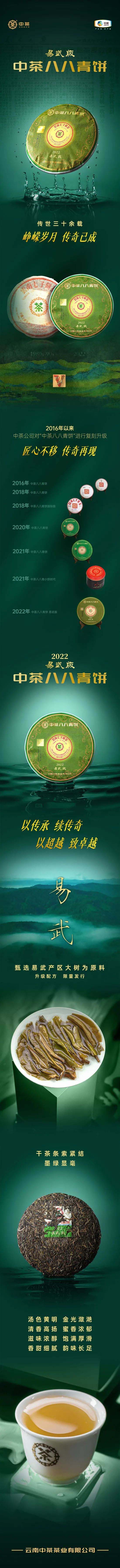 中粮-中茶2022中茶八八青饼易武版 普洱茶生茶 357g/88青/饼 /云南干仓直发