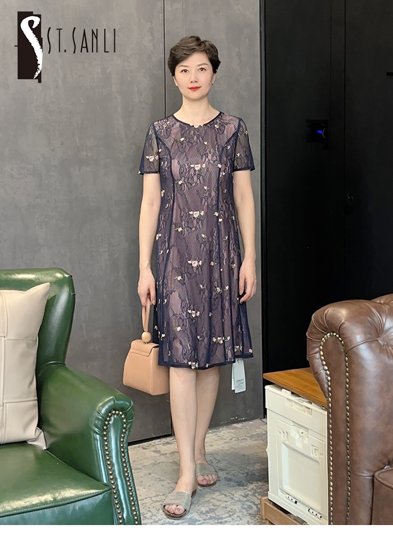 圣三利女装 新款刺绣蕾丝镂空连衣裙SL2027209