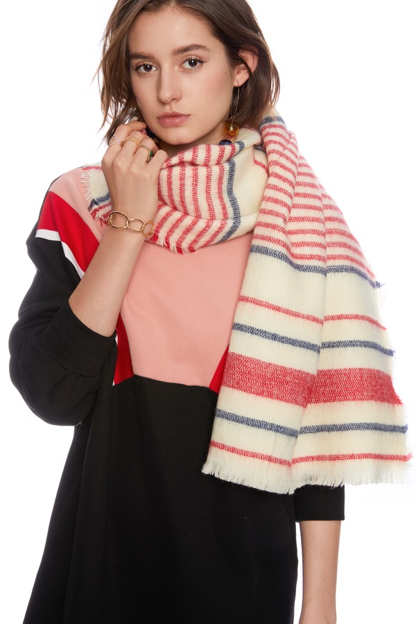 SUMMER & SAGE 拼色条纹仿羊绒流苏围巾 5008