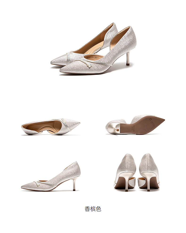 千百度珍珠饰带婚鞋中空半凉鞋女2026夏季新款宴会法式细高跟凉鞋A26288031