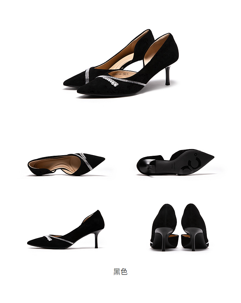 千百度粗跟一字带凉鞋女夏季露趾绝美配裙子凉鞋A24355060
