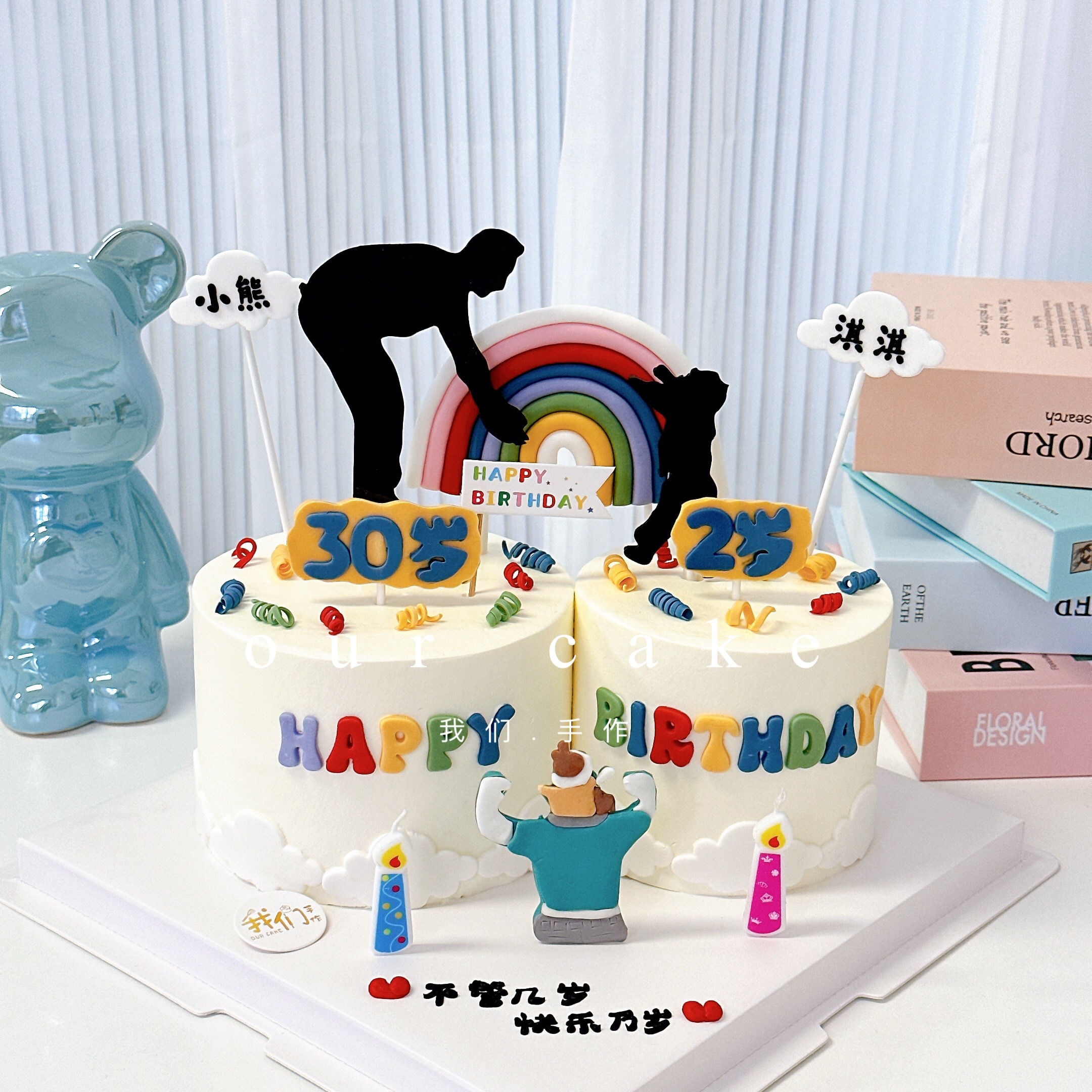 父子父女爸爸儿子女儿卡通双蛋糕-低糖处理无添加