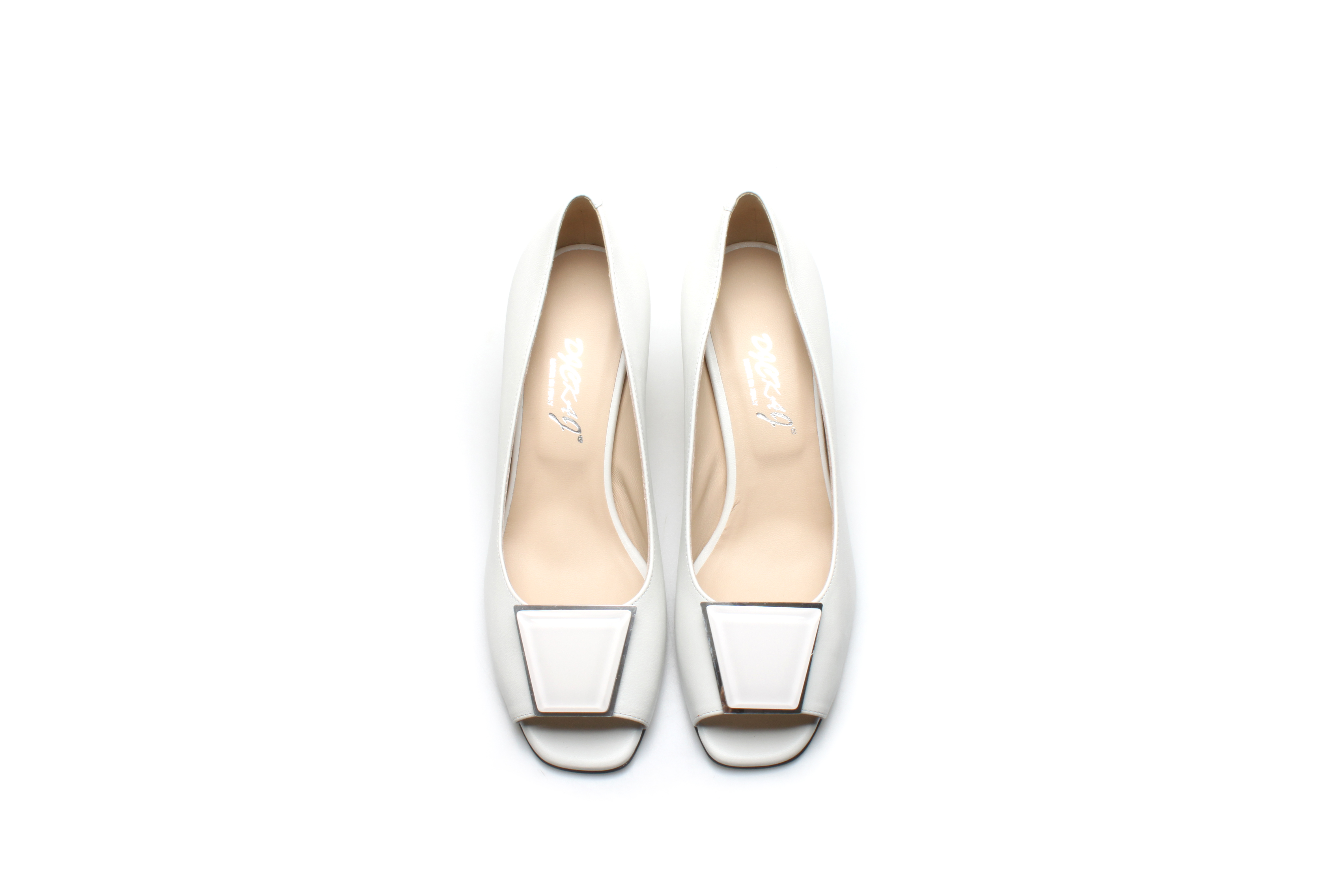 豪麟名鞋奥莱迪嘉女鞋半凉鞋羊皮革Z25308B白色 原价3660元