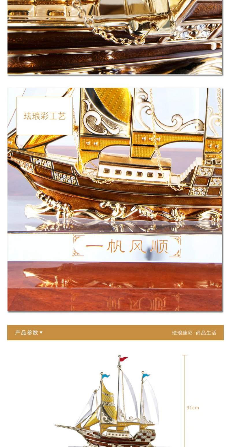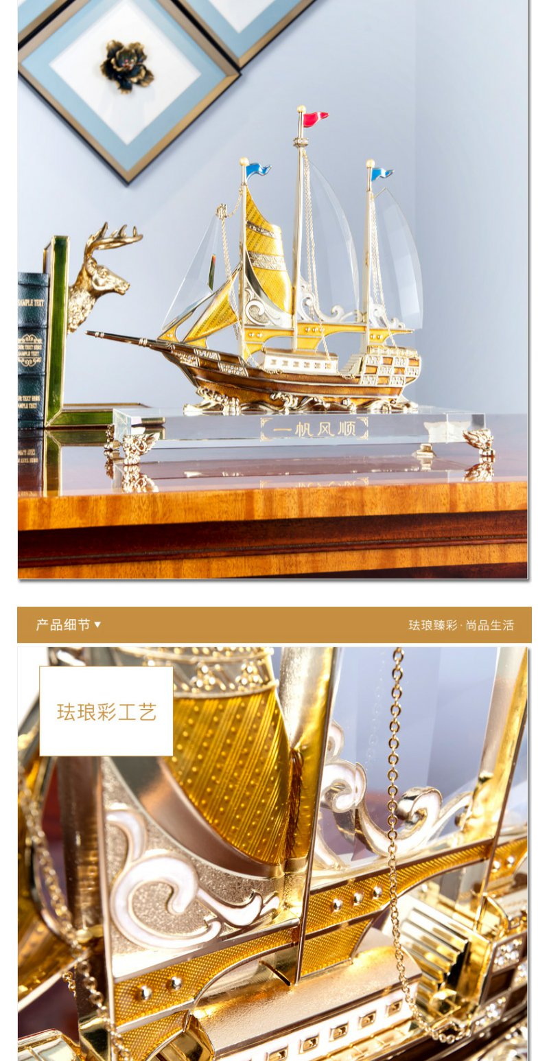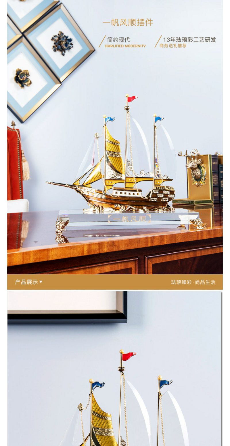 罗比罗丹一帆风顺珐琅彩船办公室客厅摆件开业商务礼品(仅1件,无货退款)