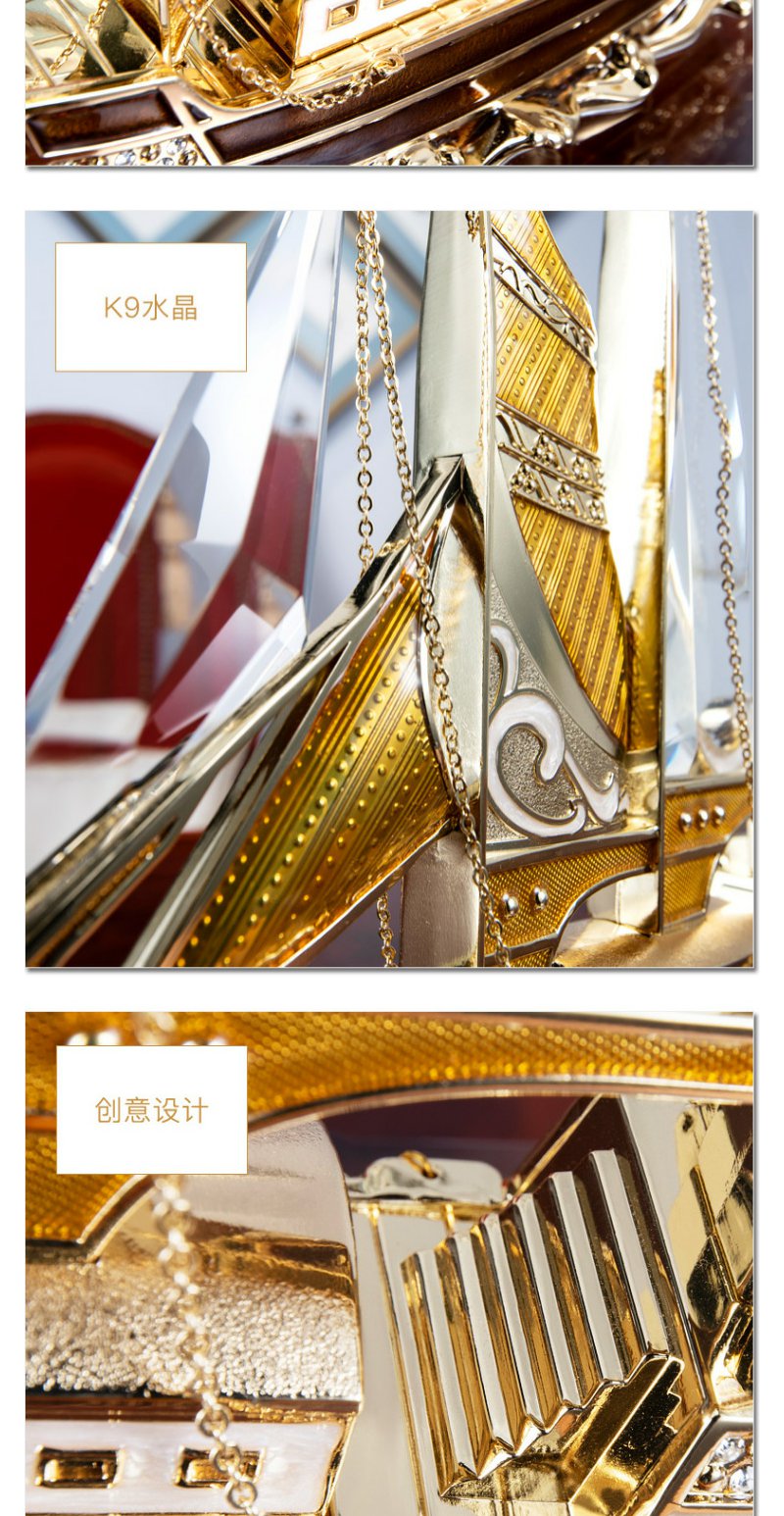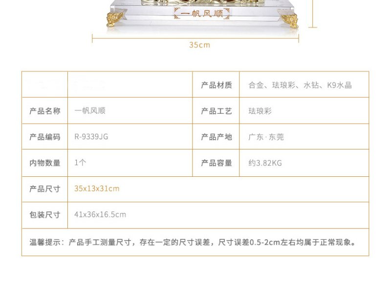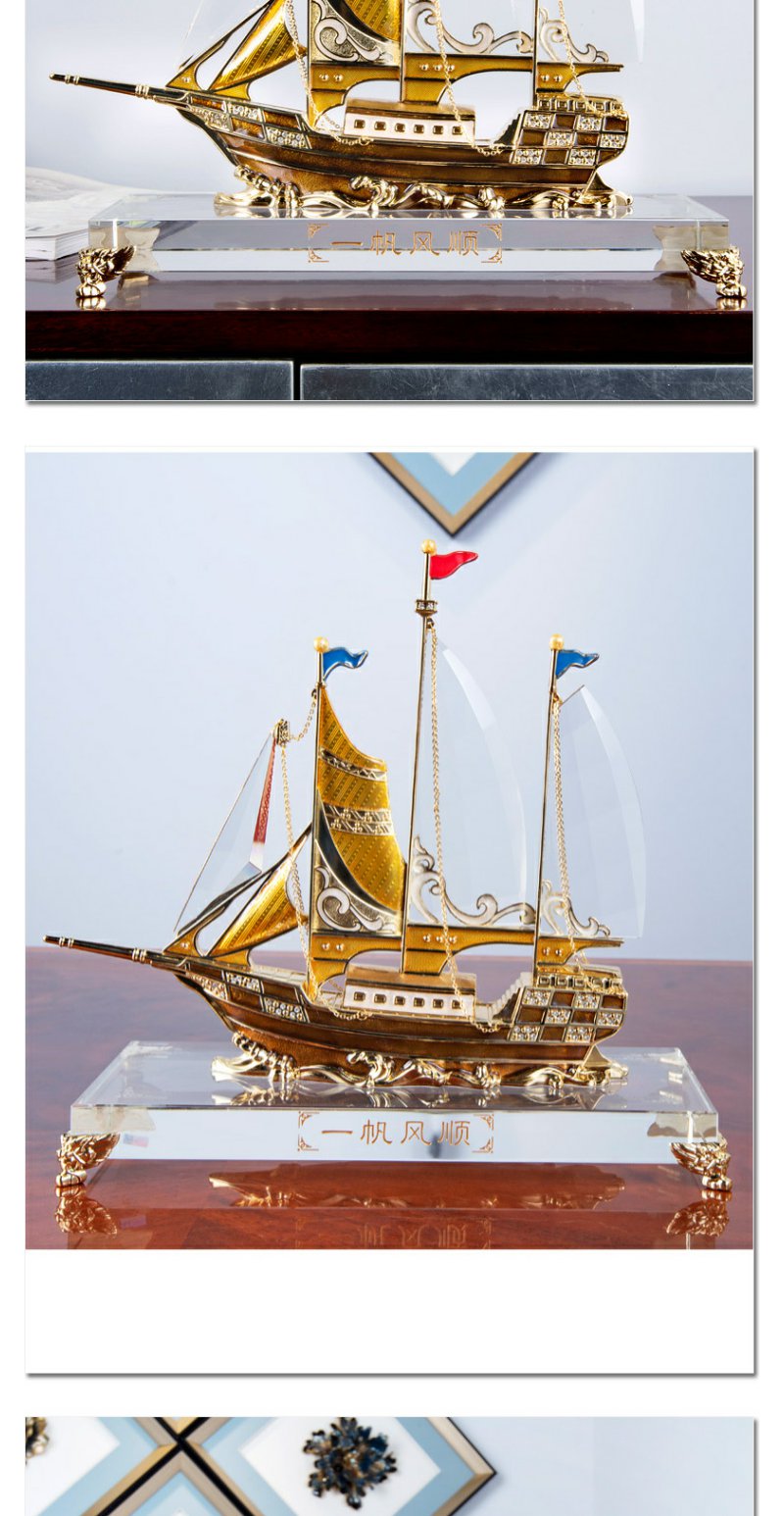 罗比罗丹一帆风顺珐琅彩船办公室客厅摆件开业商务礼品(仅1件,无货退款)