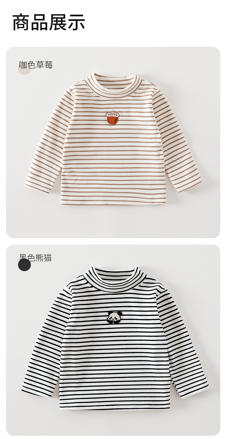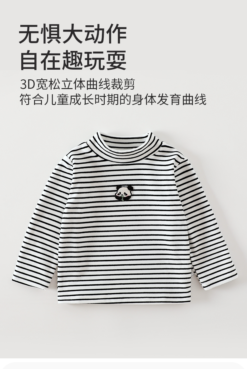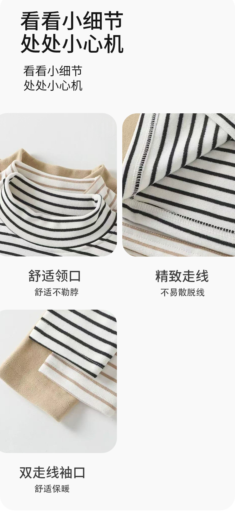 儿童秋季半高领慕斯暖绒打底衫男女宝百搭洋气打底条纹