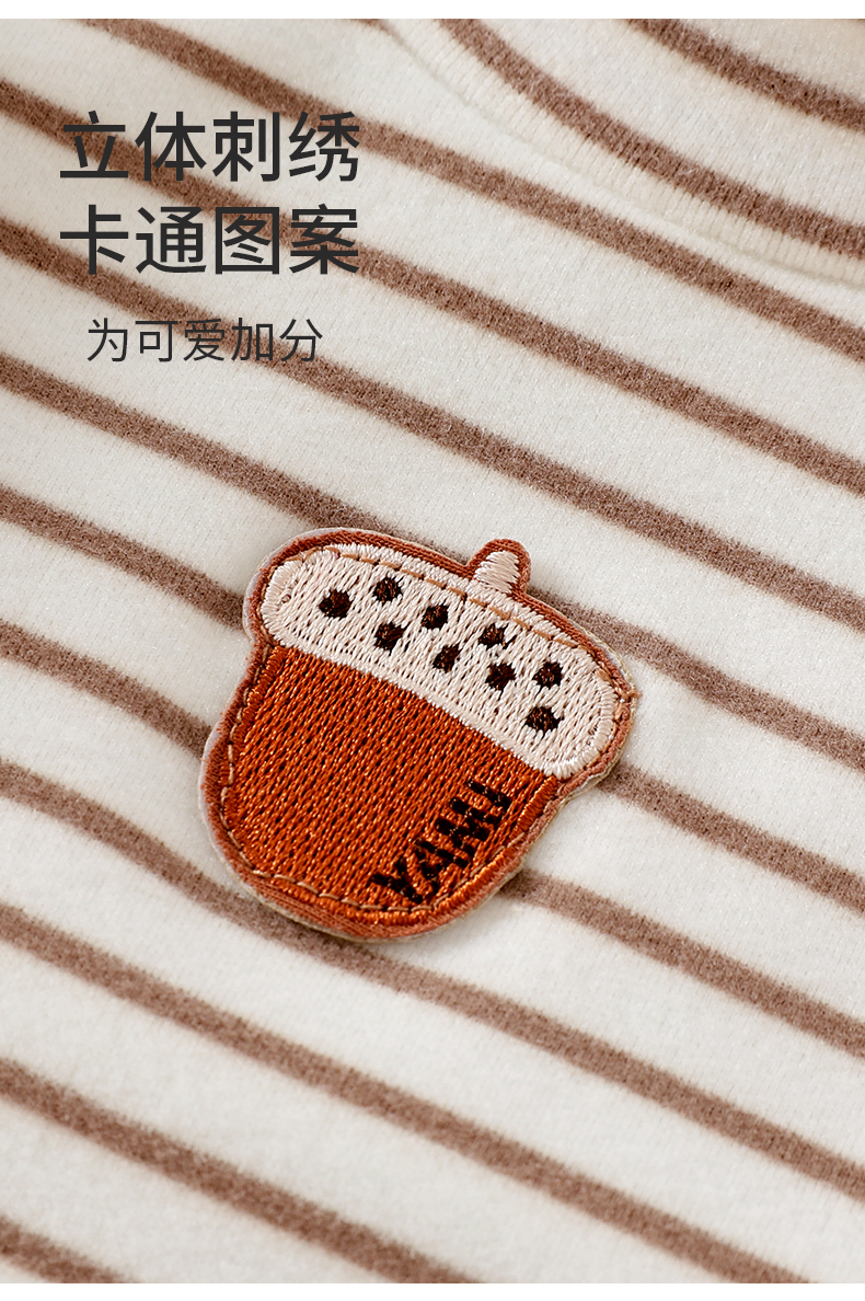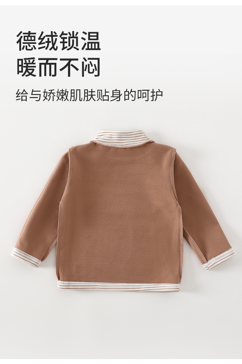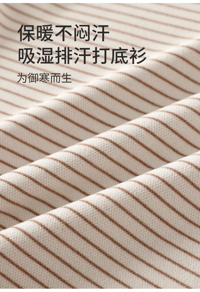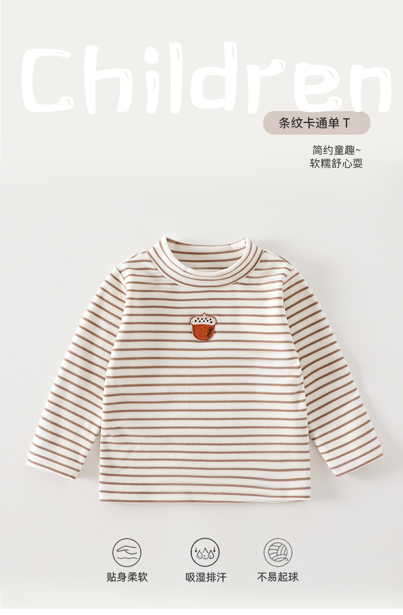 儿童秋季半高领慕斯暖绒打底衫男女宝百搭洋气打底条纹