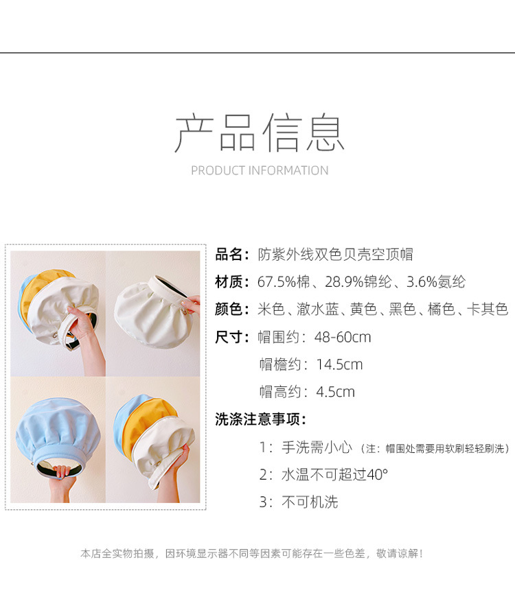 UPF50+防紫外线空顶遮阳帽女百搭防晒可折叠发箍太阳帽子夏贝壳帽