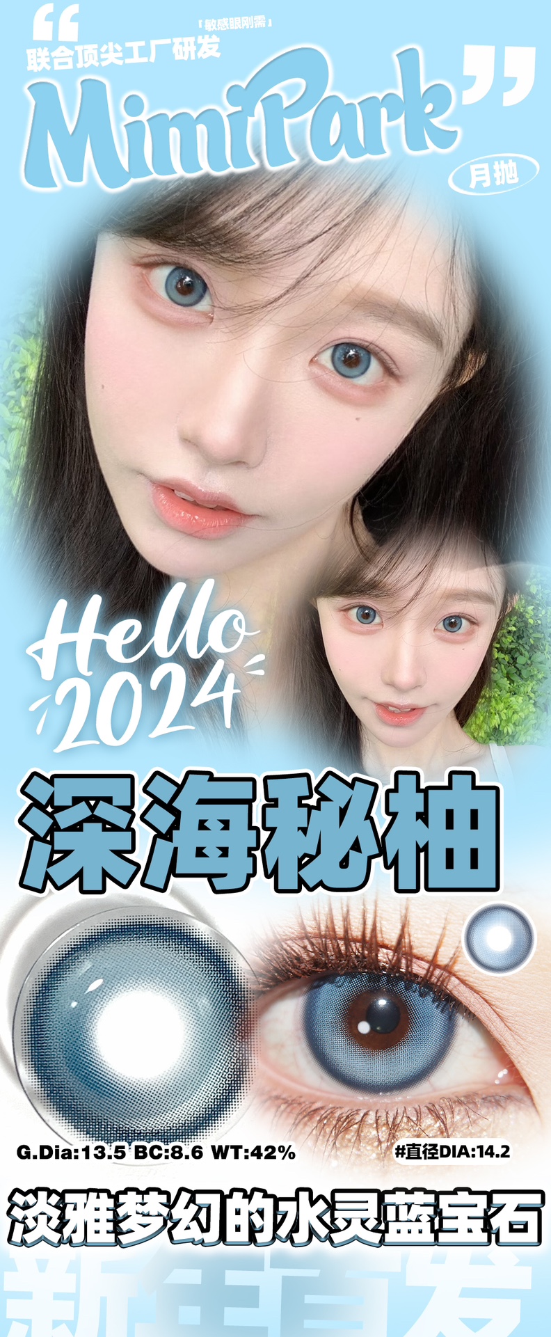 Mimipark 深海秘柚 月抛 两片 14.2mm 参考着色13.5mm 基弧8.6 含水42% 新锐国货