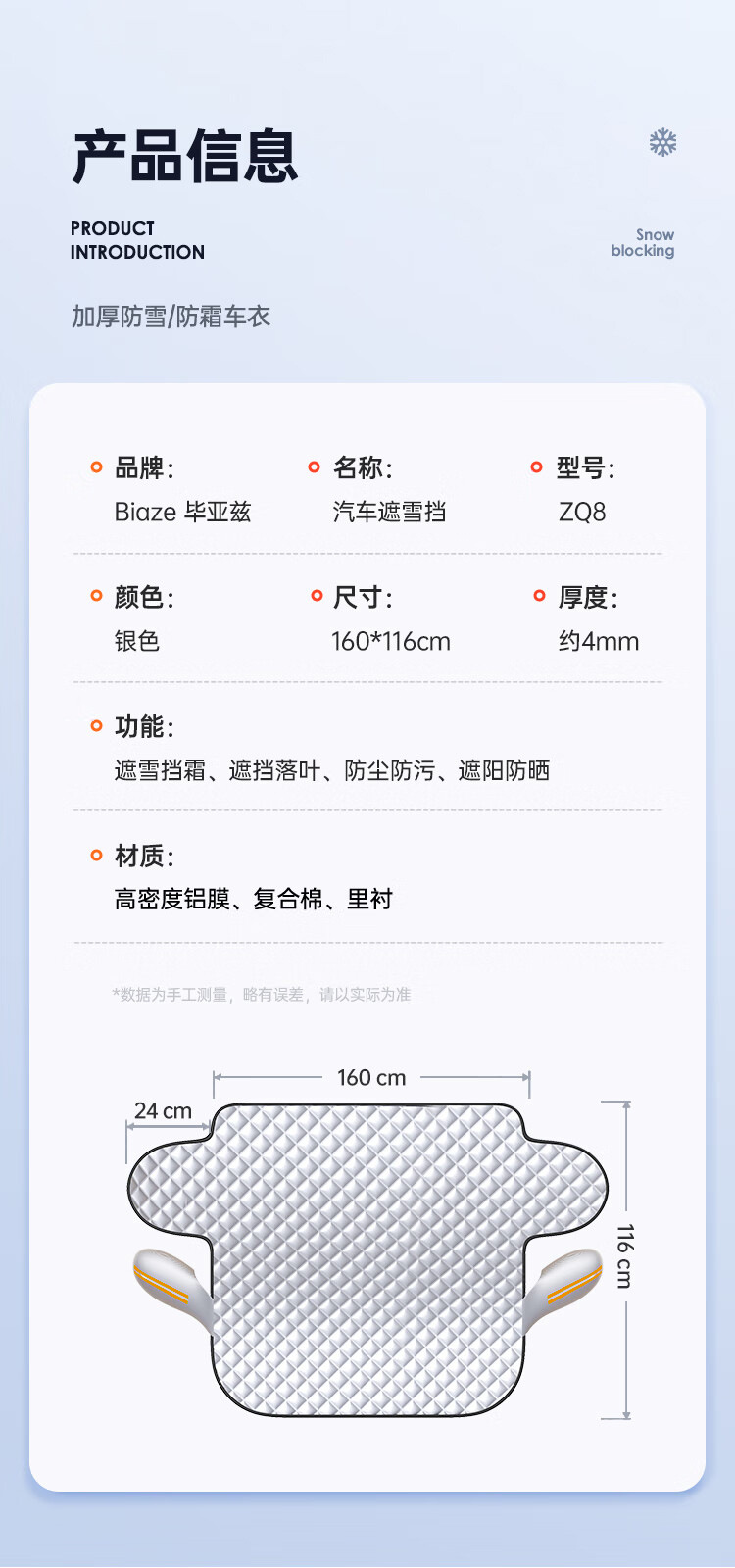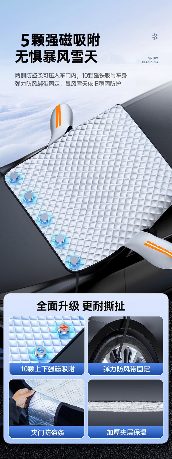 「防雪防冻!加厚加棉」汽车玻璃雪档前挡风玻璃防霜防雪加厚半罩车衣冬季磁吸铝膜遮雪挡装饰