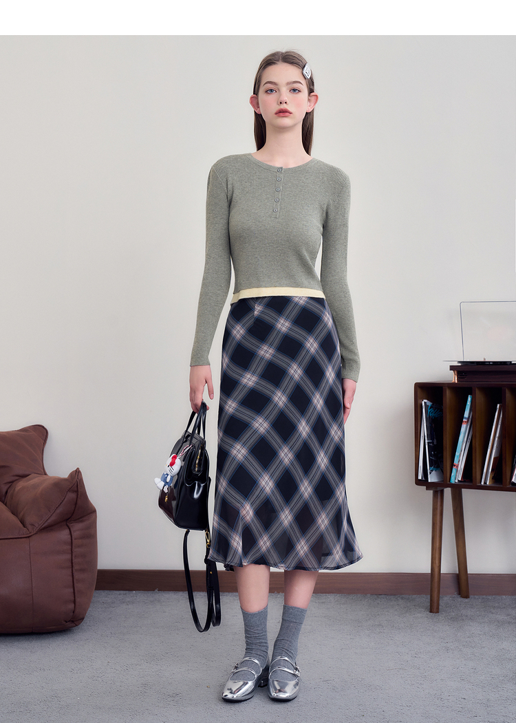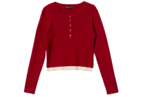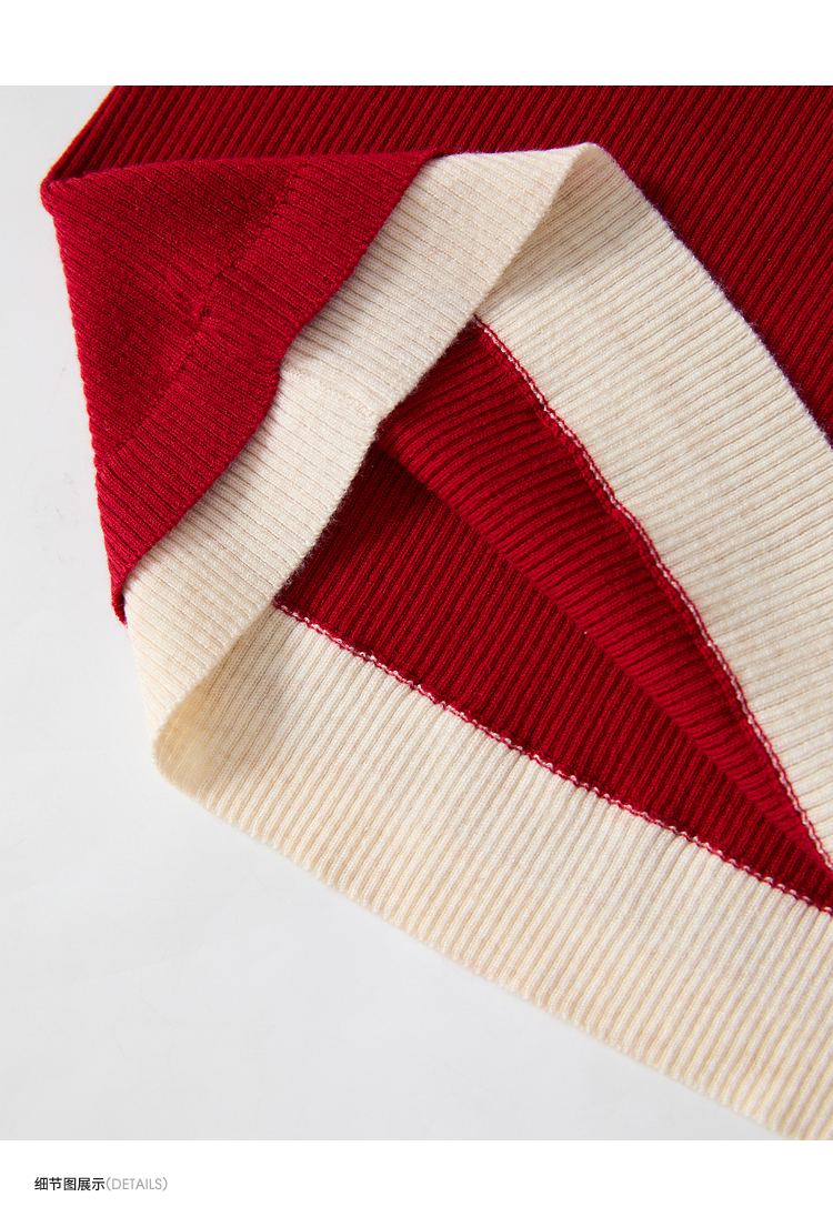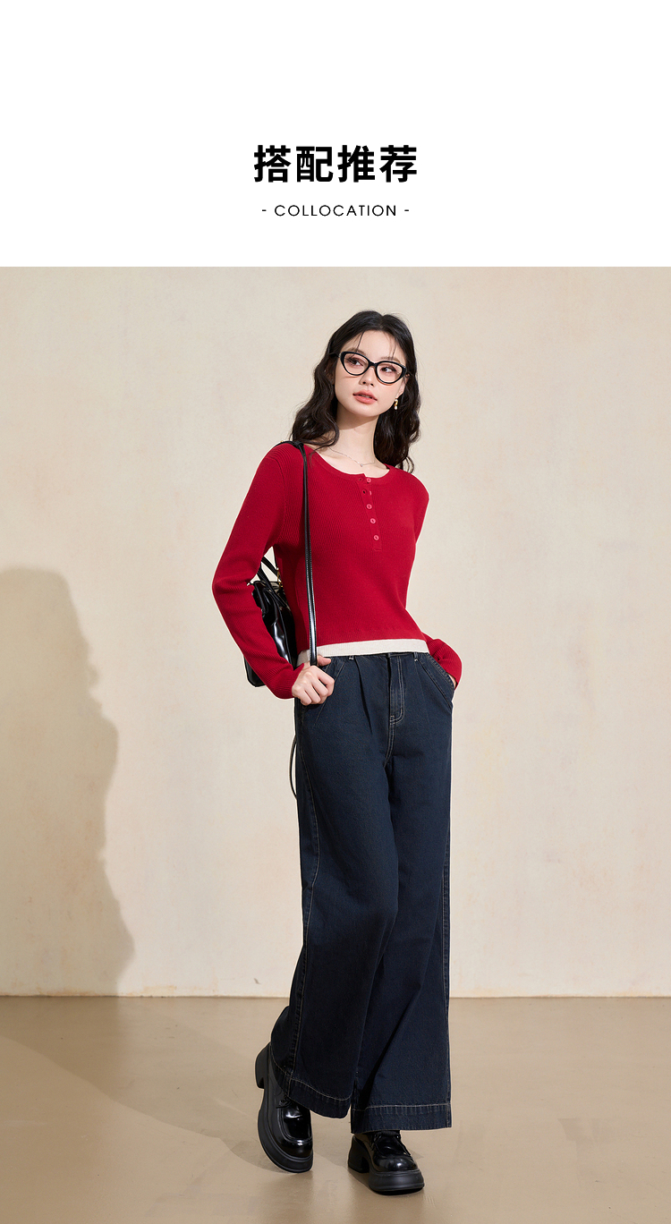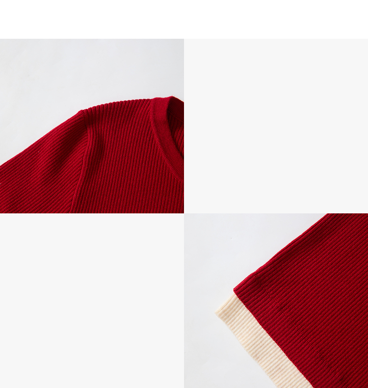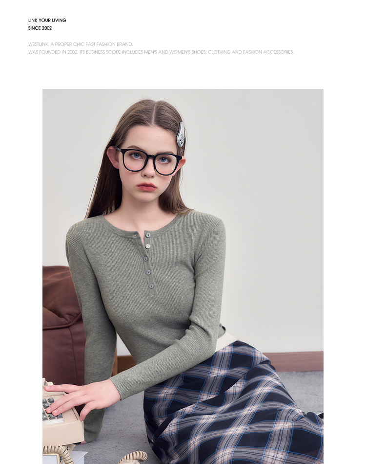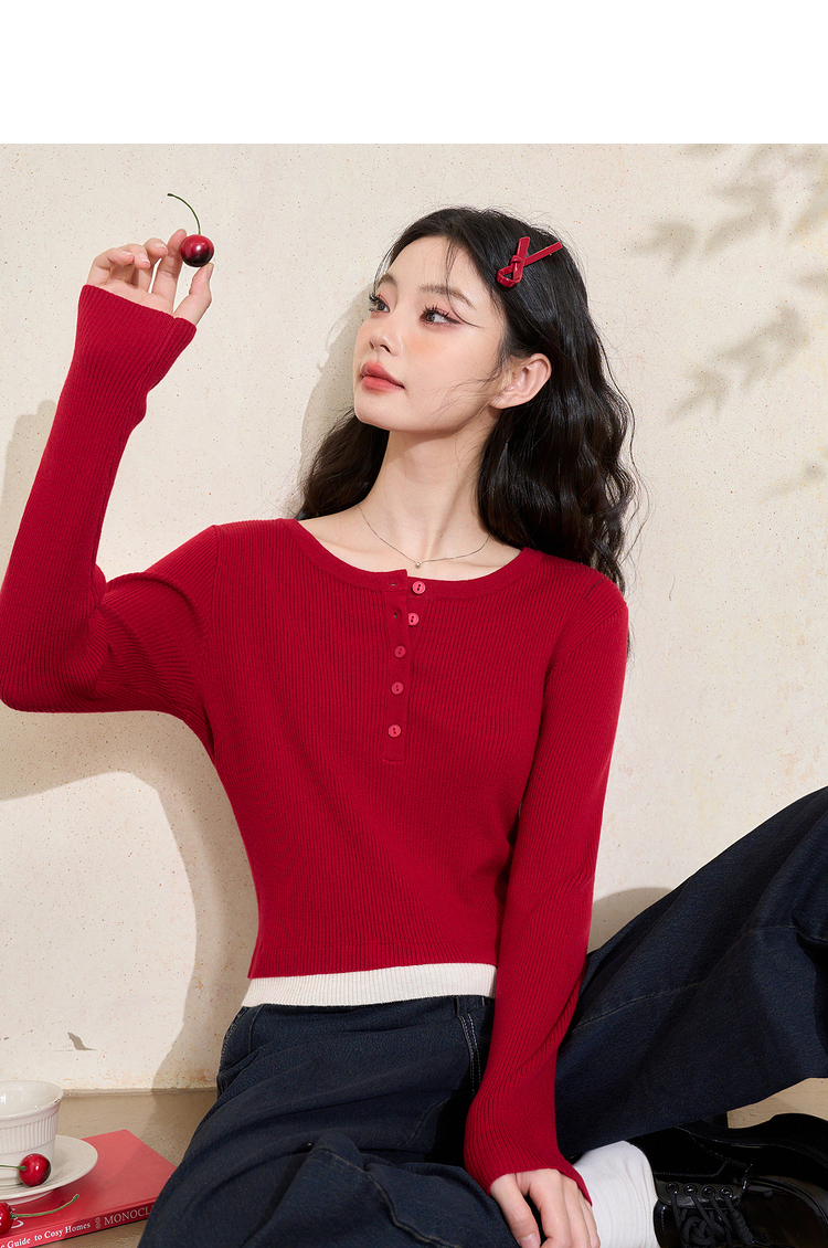 西遇长袖修身针织衫女新款薄款显瘦假两件短款上衣D3342260