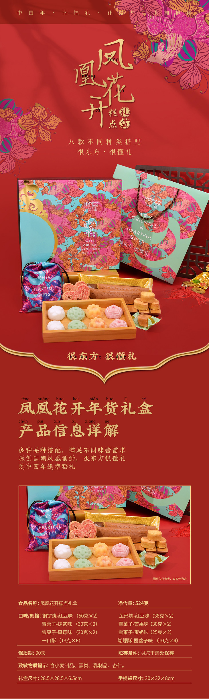 六合信 • 凤凰花开糖果糕点礼盒 508g |甄选八种传统糕点过年送礼送长辈公司节日团购礼品礼盒