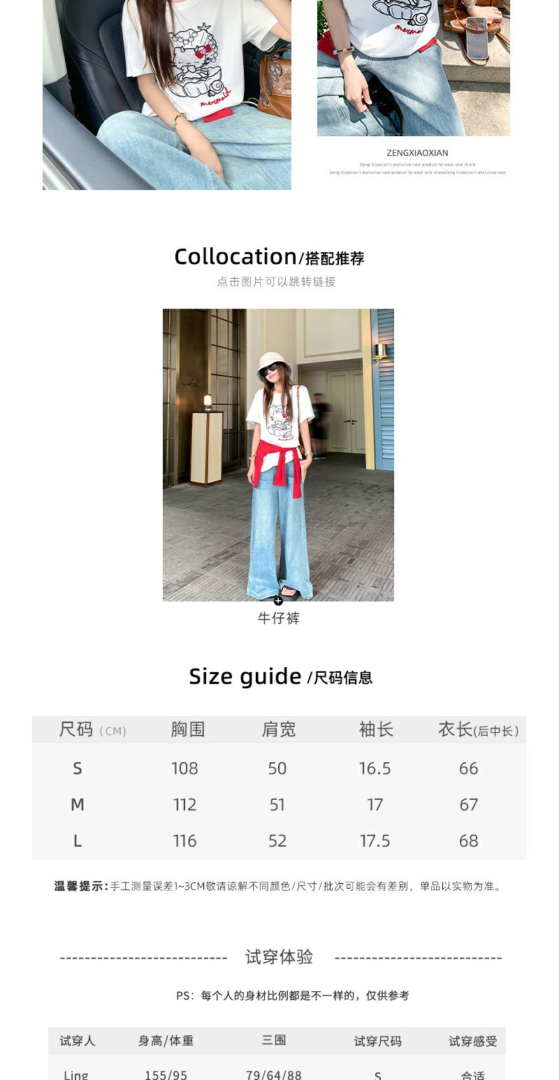 <曾小咸推荐> 韩系印花白色圆领短袖t恤【预售7-15天发货】