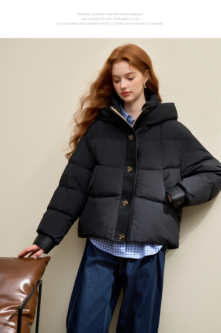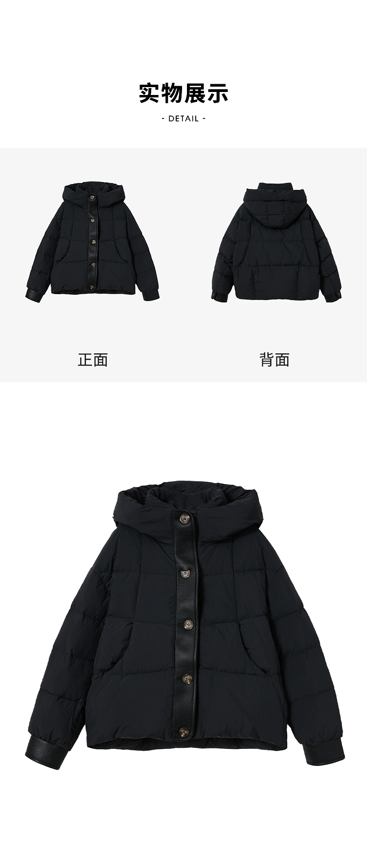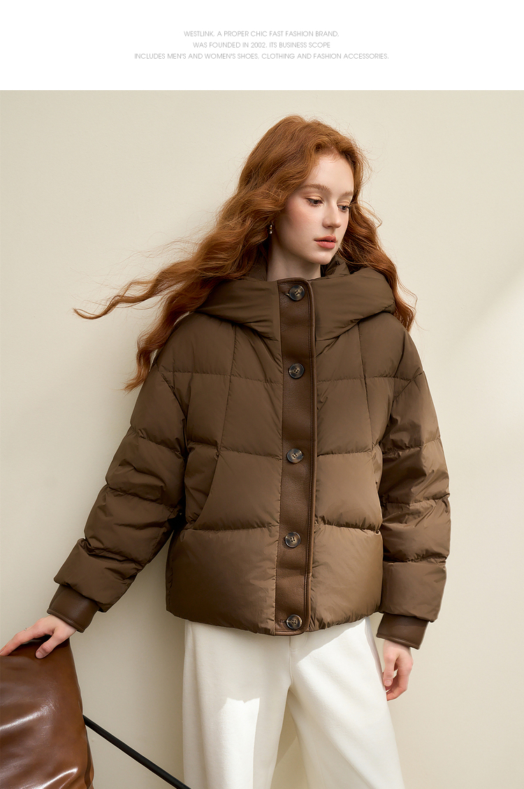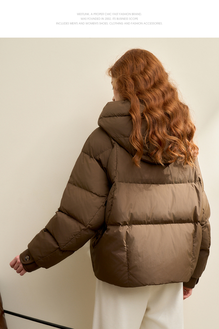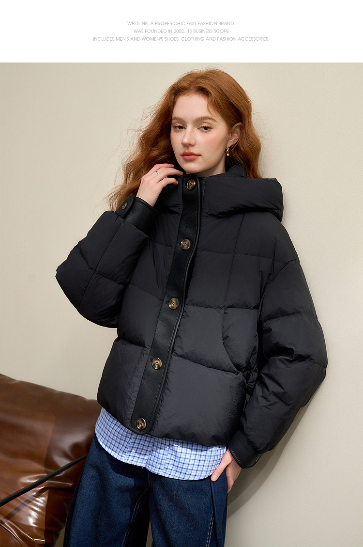 随性休闲简约拼接高级感连帽立领羽绒服女秋冬保暖外套V0043427
