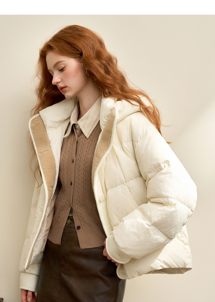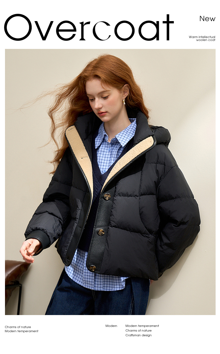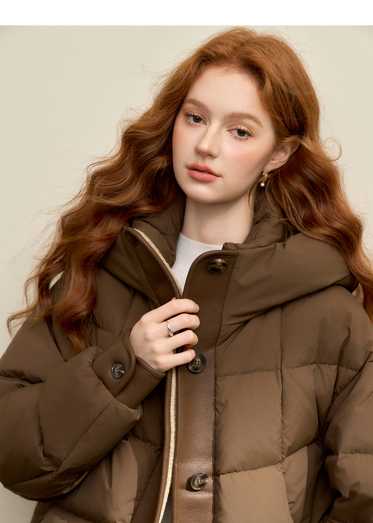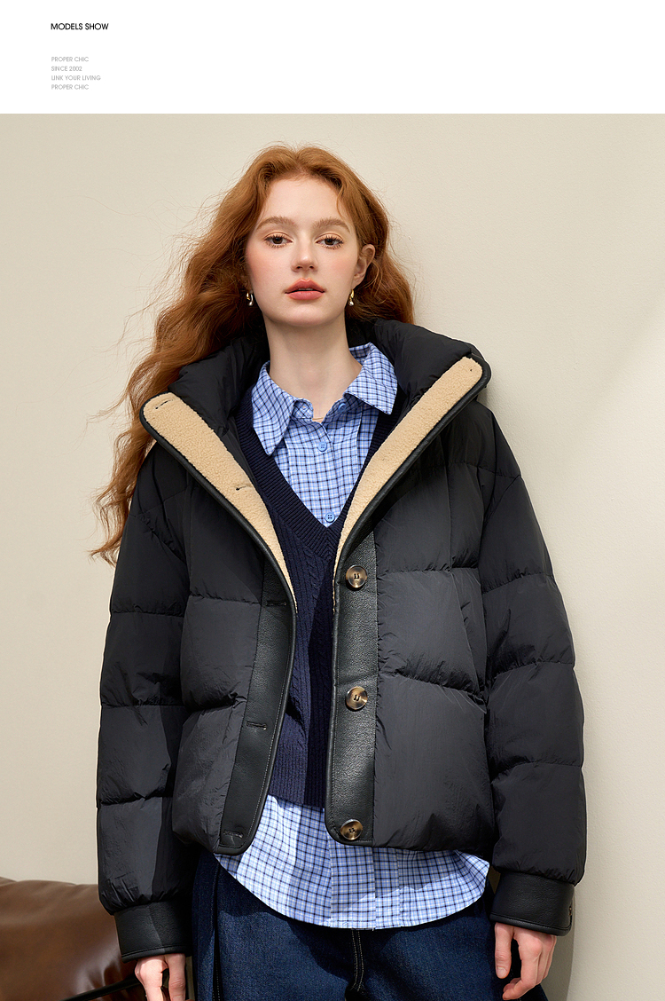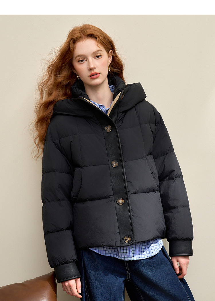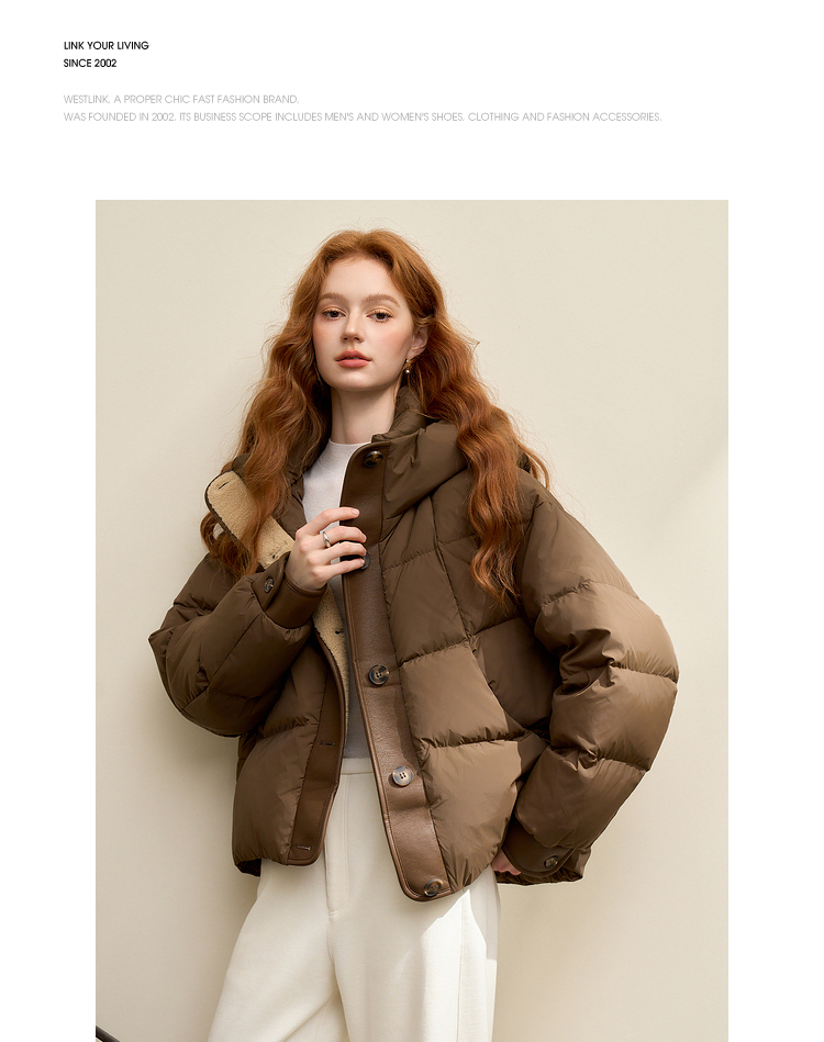 随性休闲简约拼接高级感连帽立领羽绒服女秋冬保暖外套V0043427