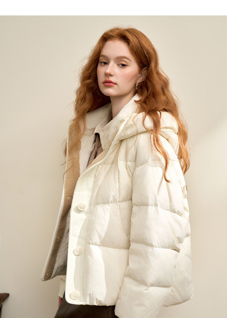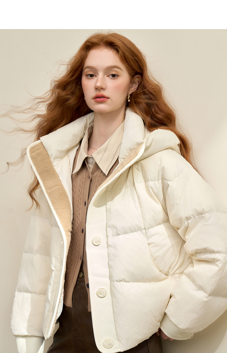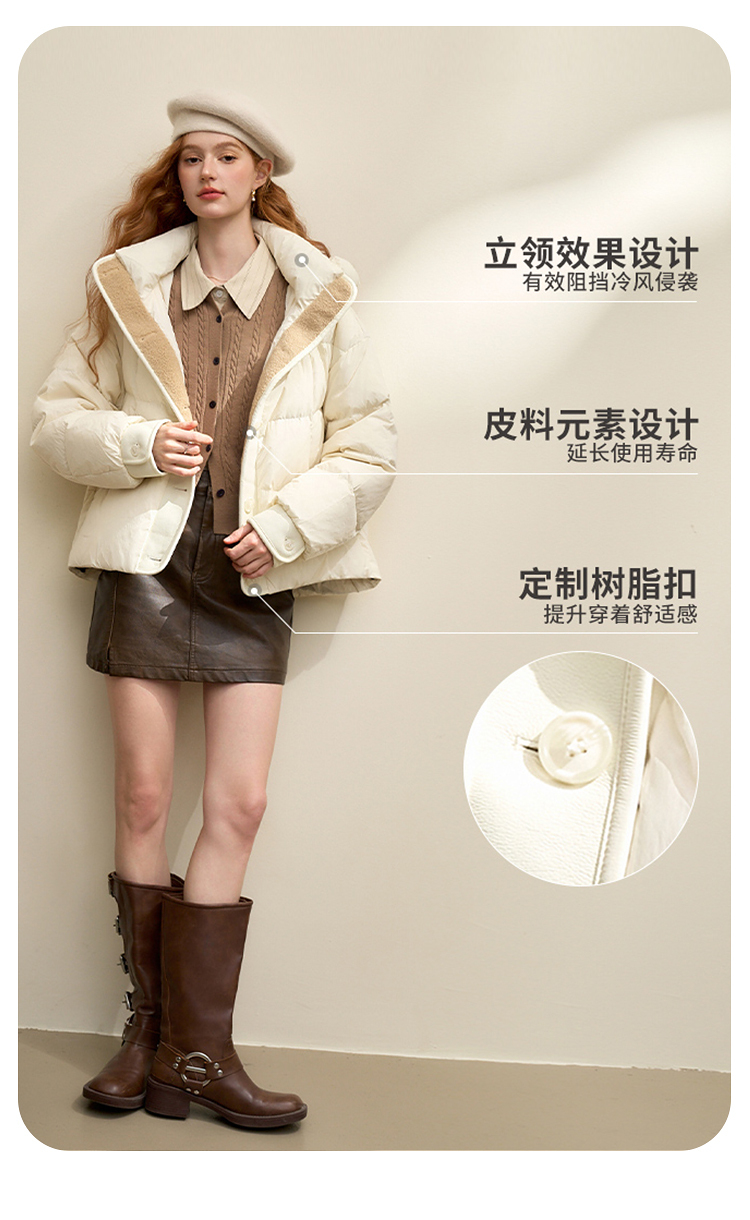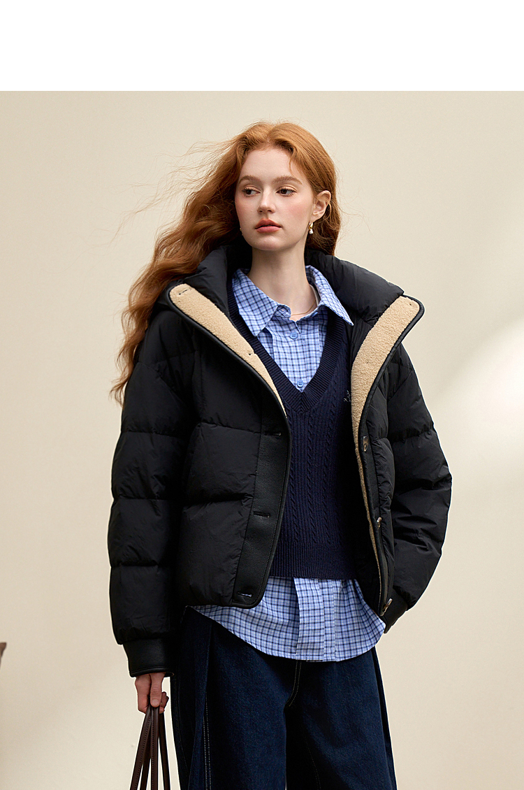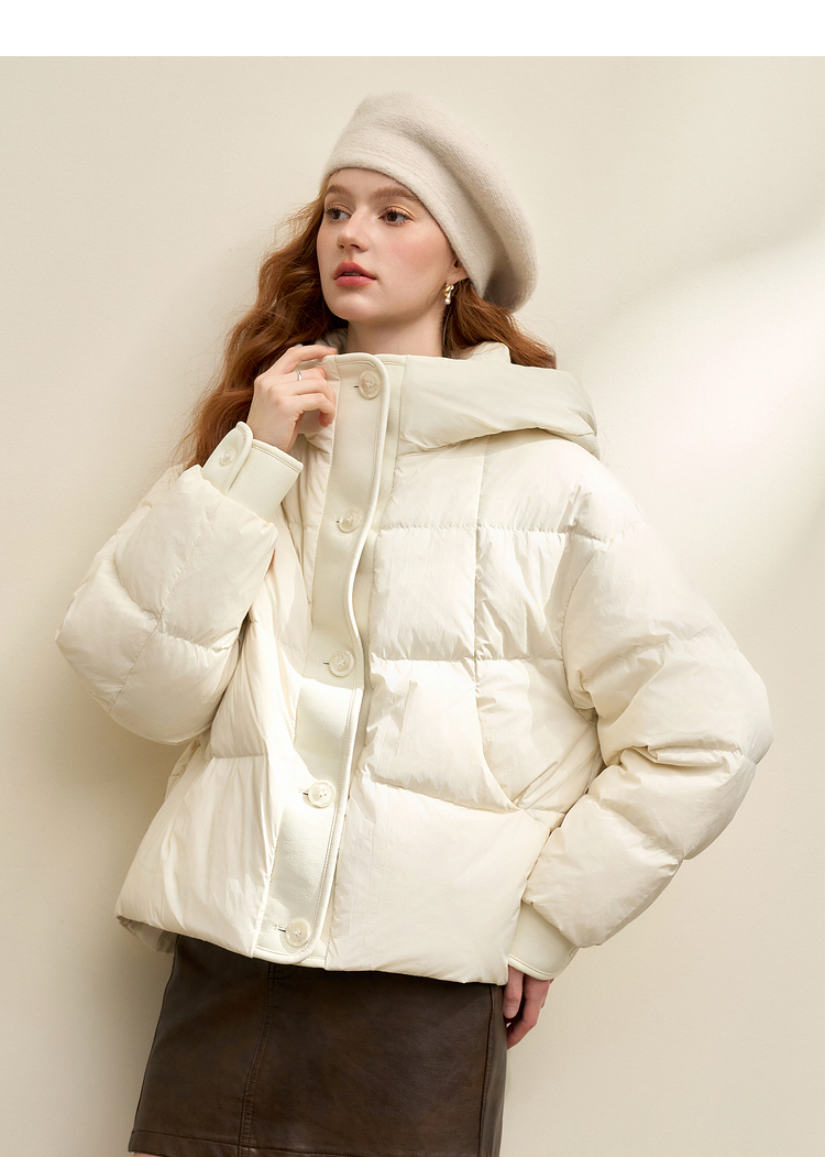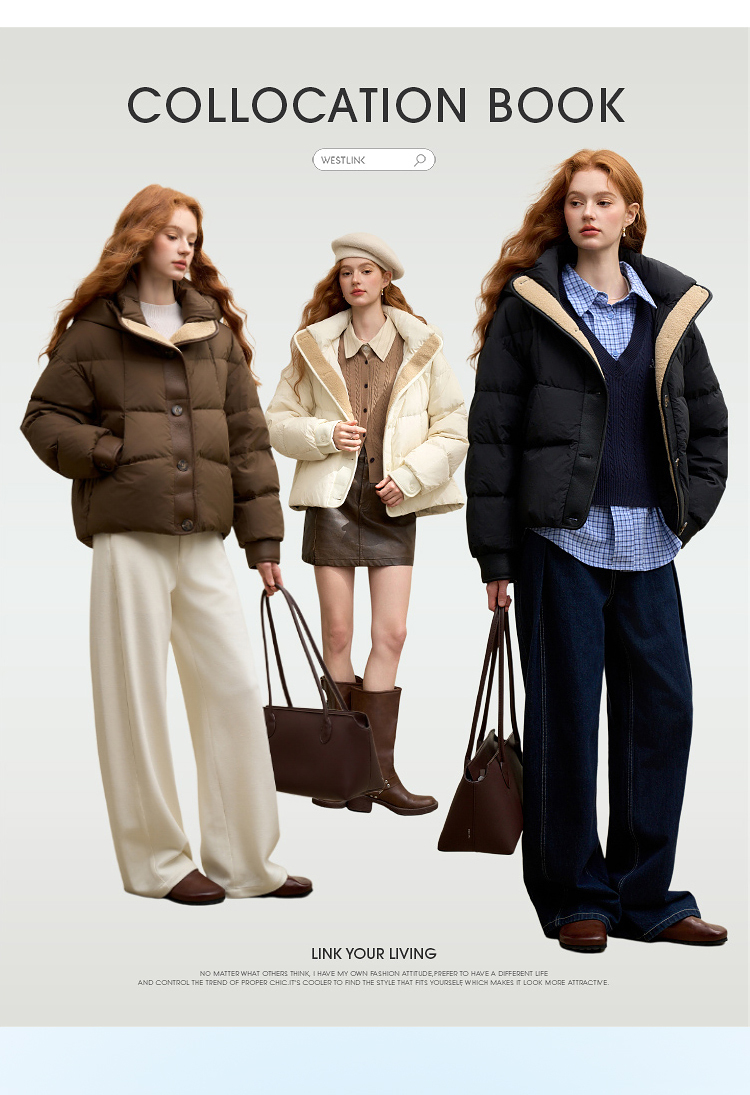 随性休闲简约拼接高级感连帽立领羽绒服女秋冬保暖外套V0043427