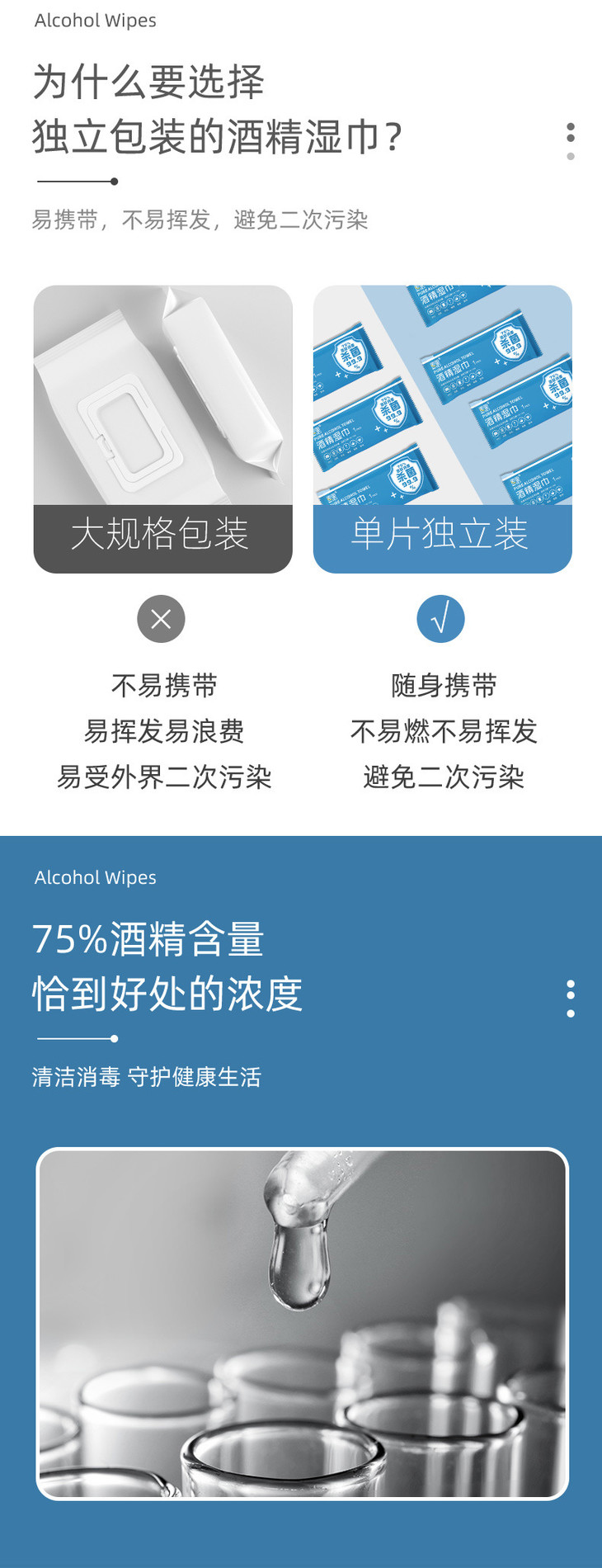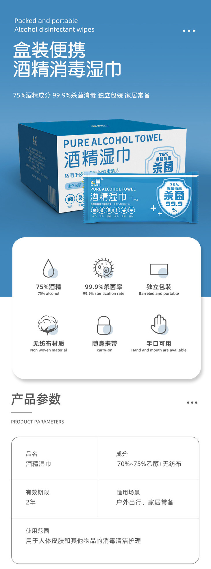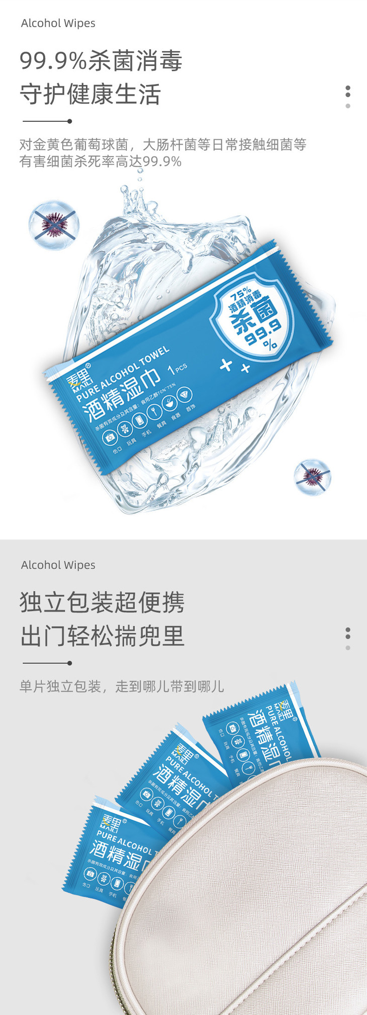 「一次性独立包装50片!随身携带」麦里75%酒精湿巾单片独立装50片居家日用携一次性手机清洁工具