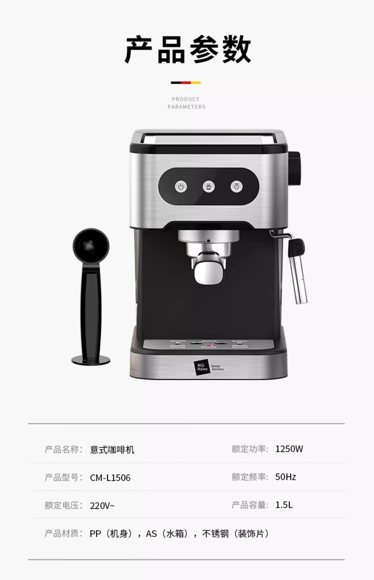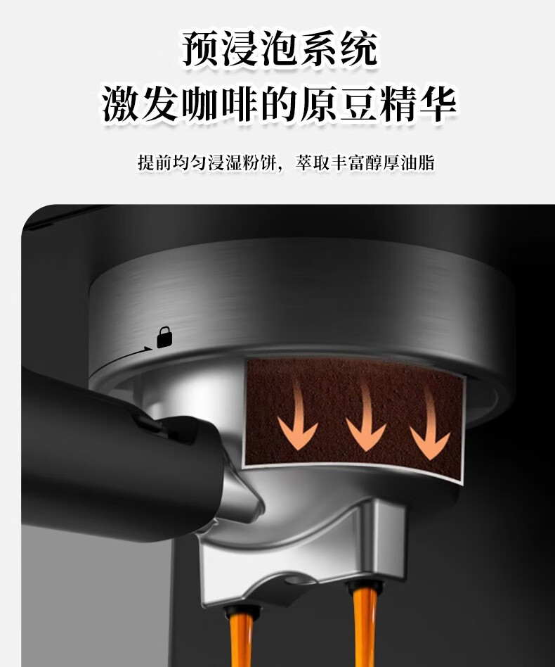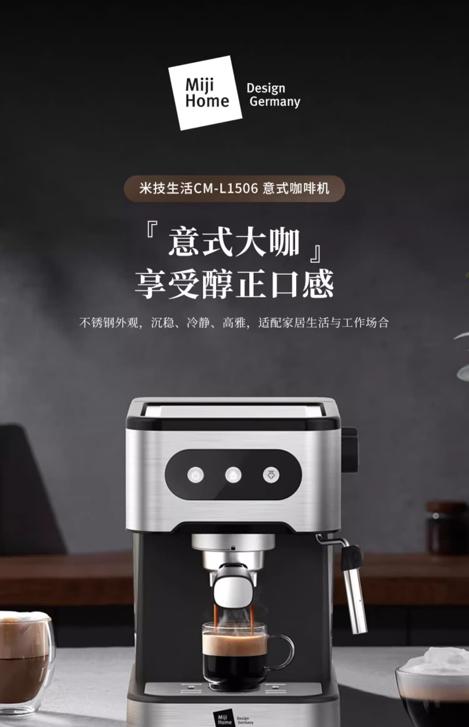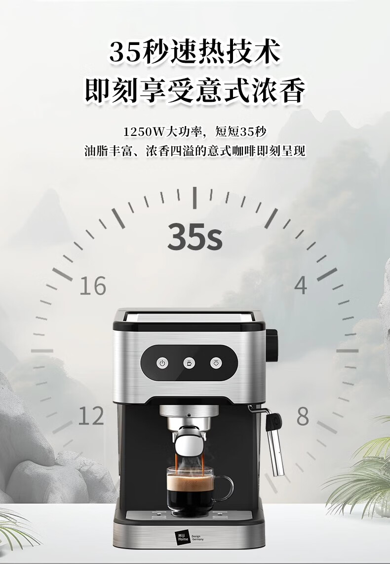 【小家电】米技生活咖啡机CM-L1506家用压力式咖啡机意式咖啡打奶泡不锈钢色 HF