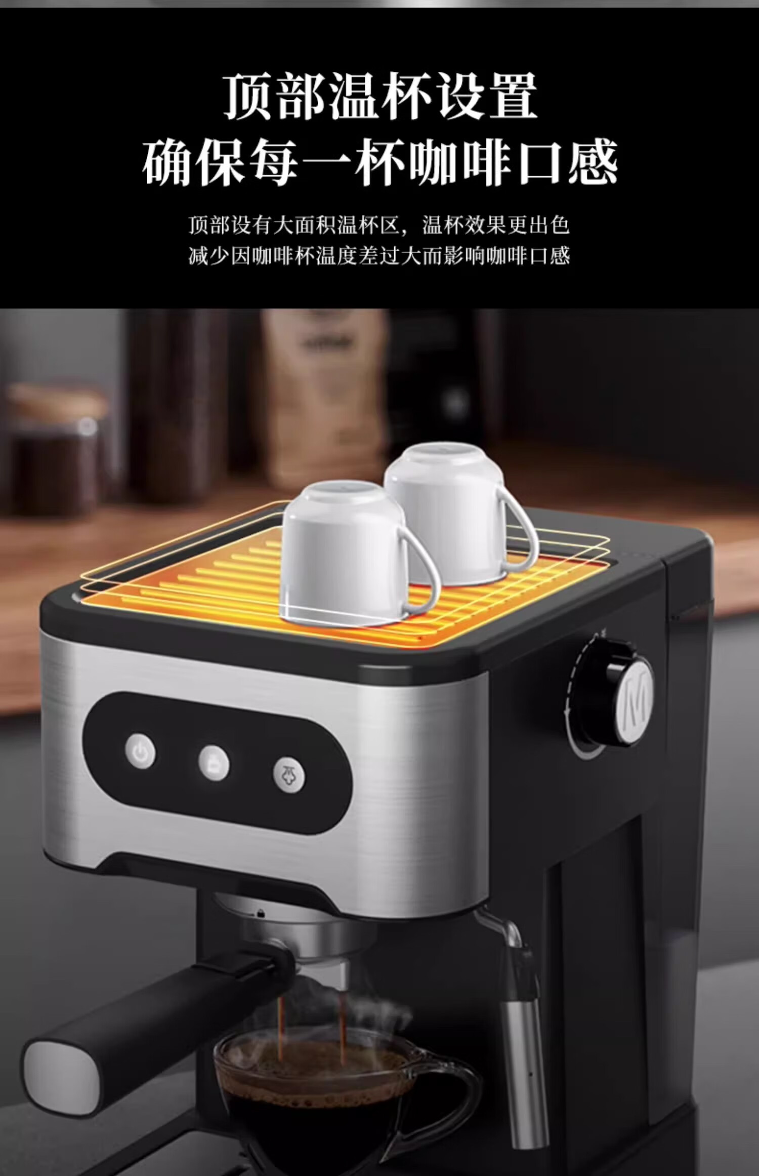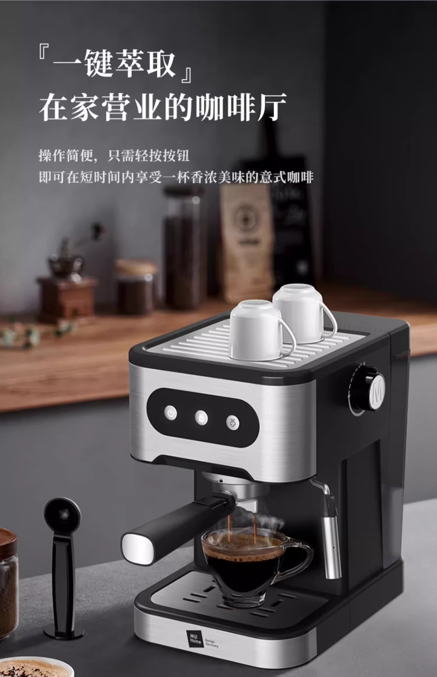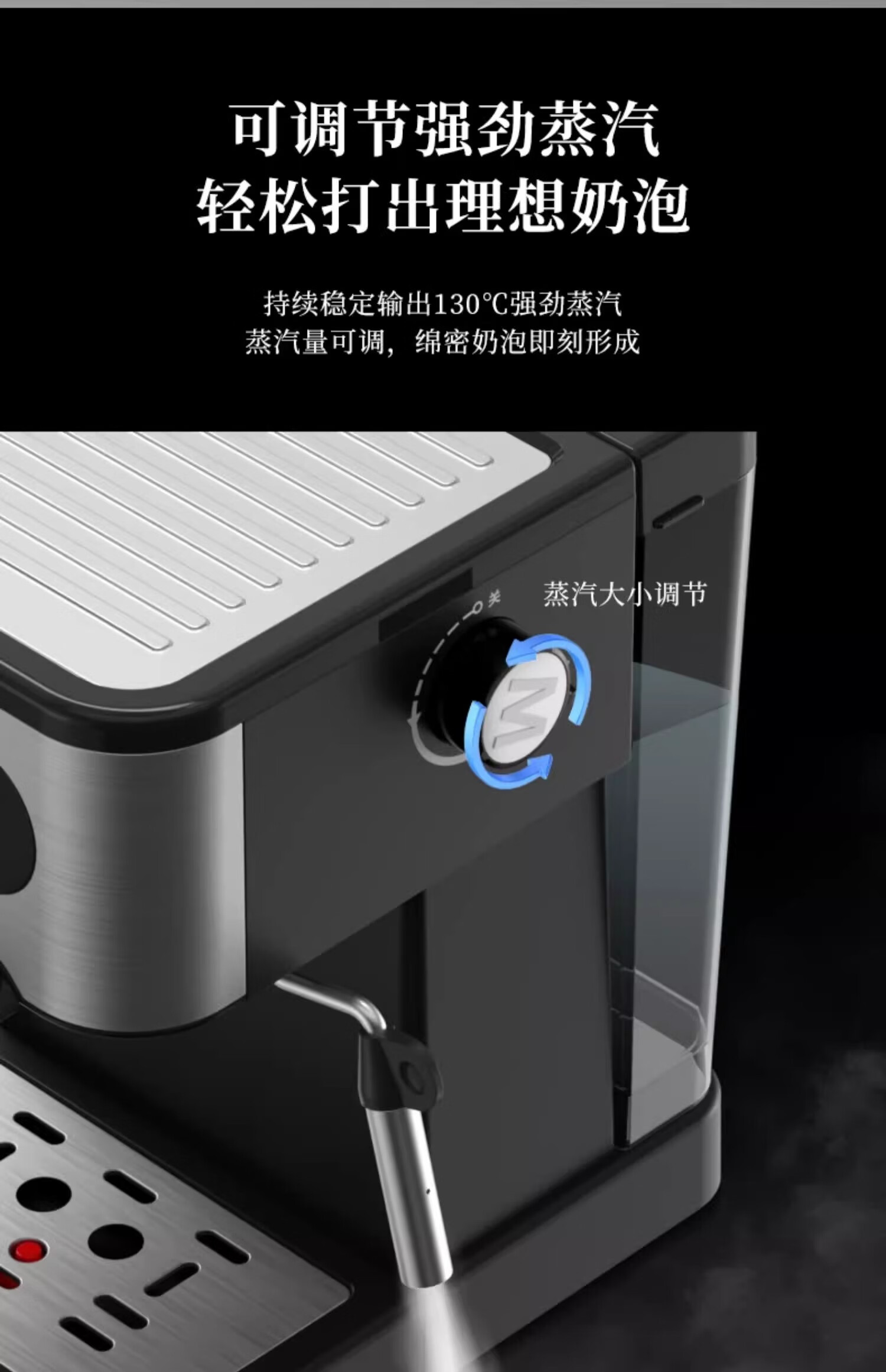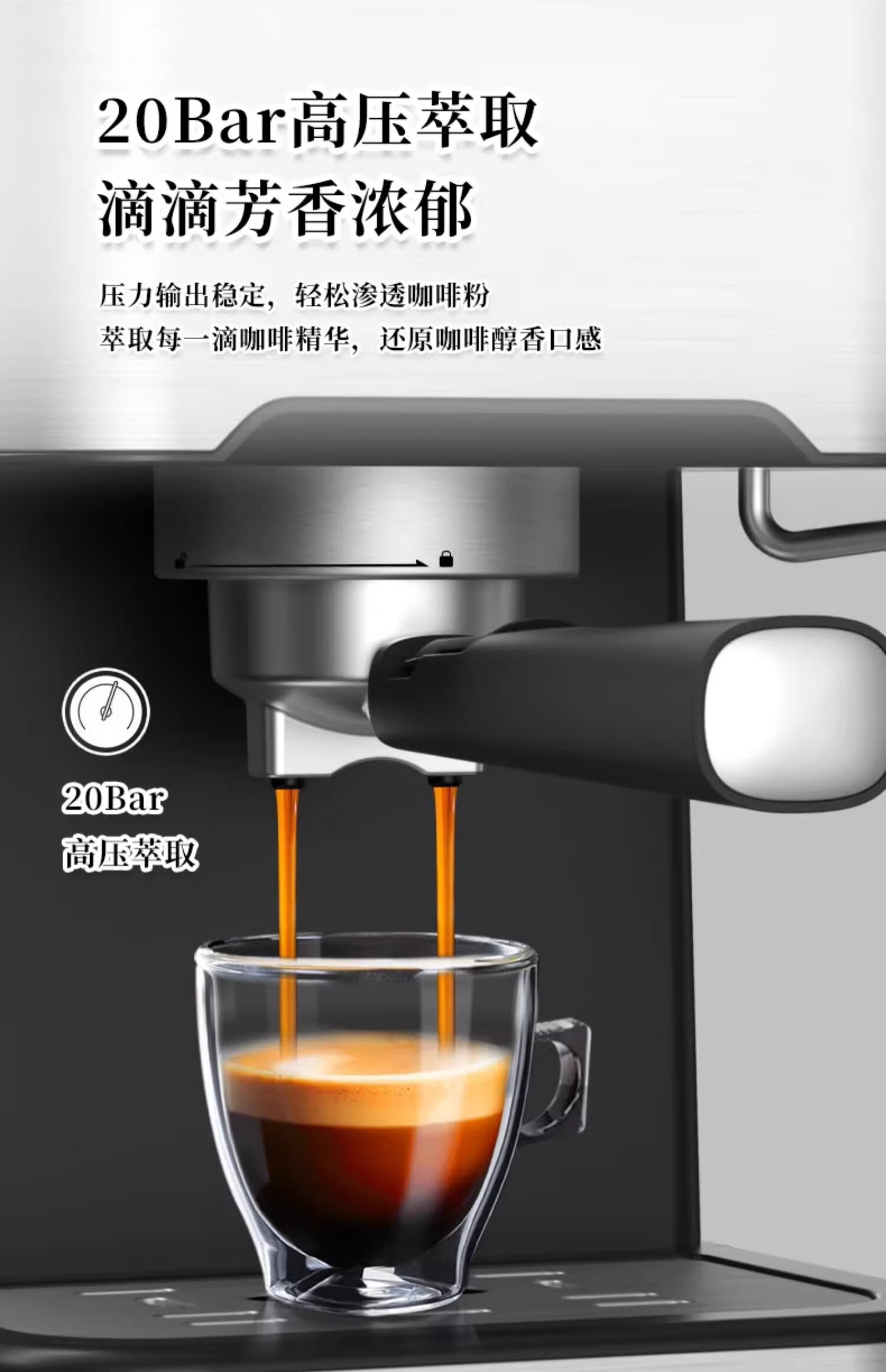 【小家电】米技生活咖啡机CM-L1506家用压力式咖啡机意式咖啡打奶泡不锈钢色 HF