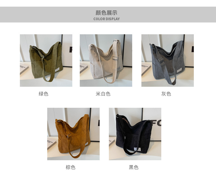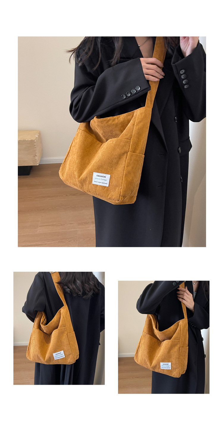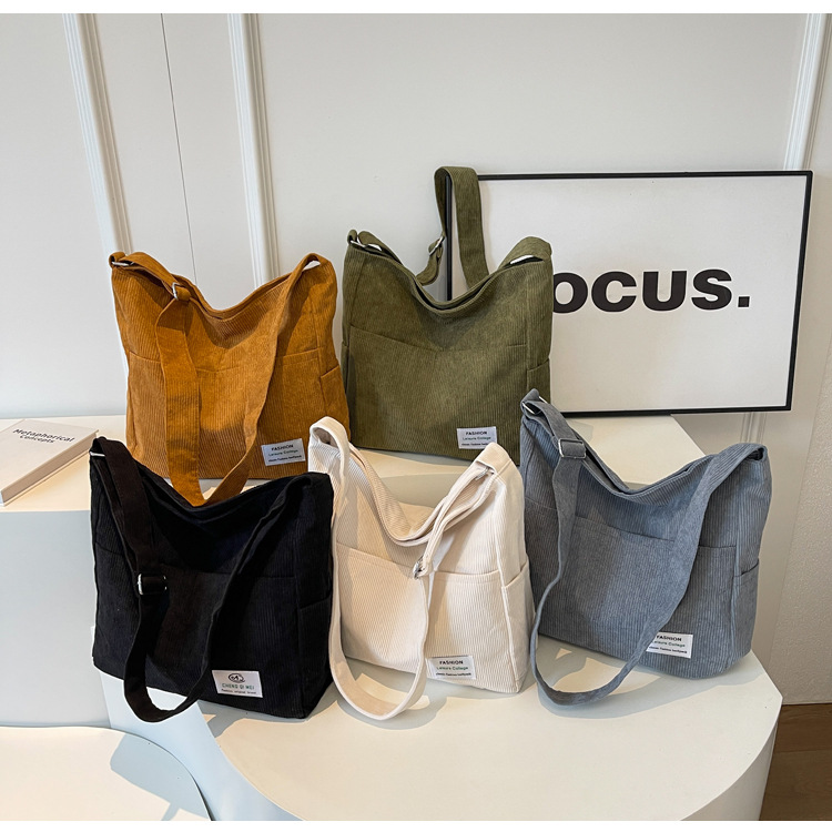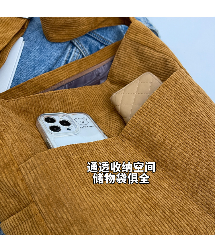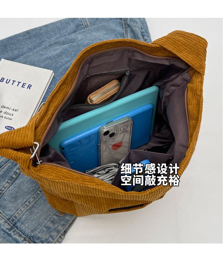 灯芯绒女包2024秋冬新款 大容量包包 手提包韩国简约单肩斜挎包 上课通勤托特包